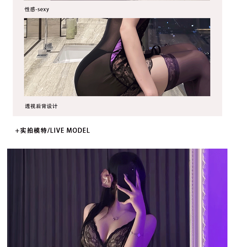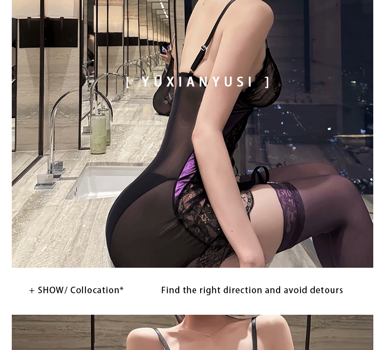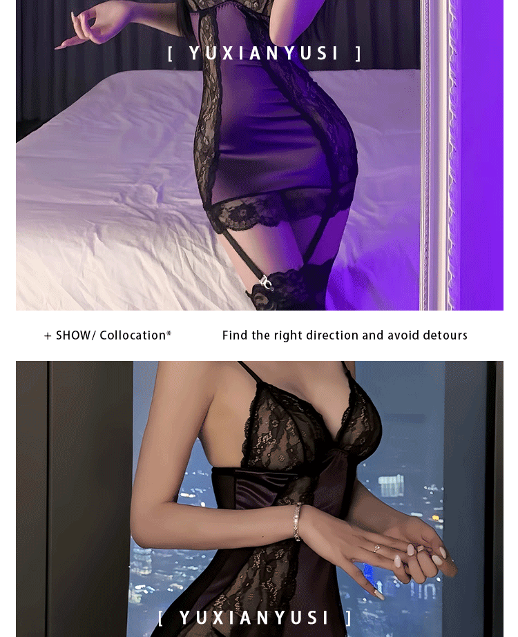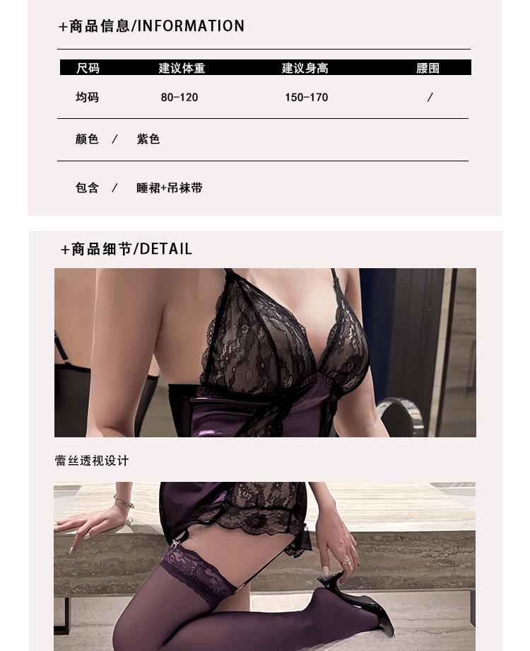 플러스 사이즈 퍼플 속옷 레이스 할로우 섹시한 가방 힙합 스커트 슬링 파자마 여성용 레이스 백리스 하이 엔드 홈 의류스토어 가기