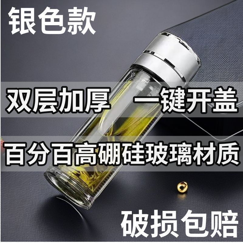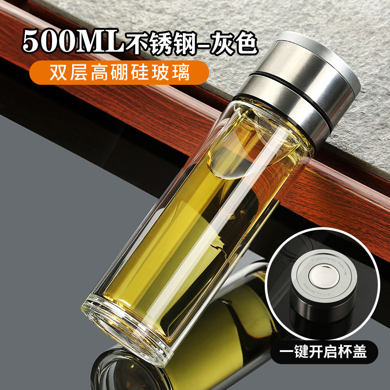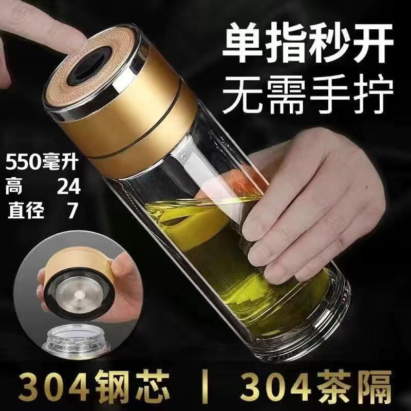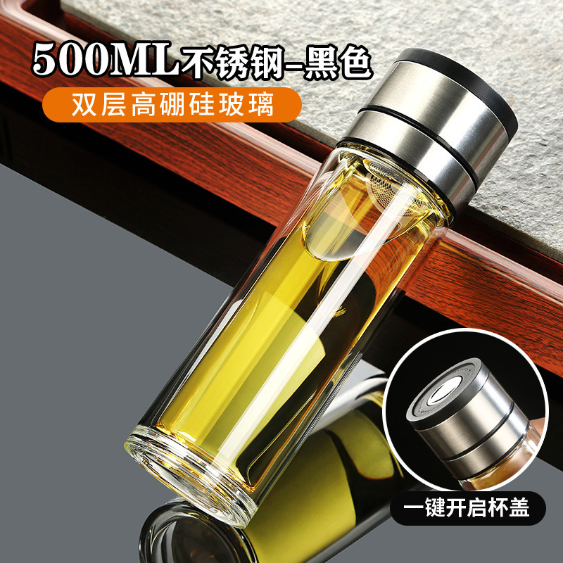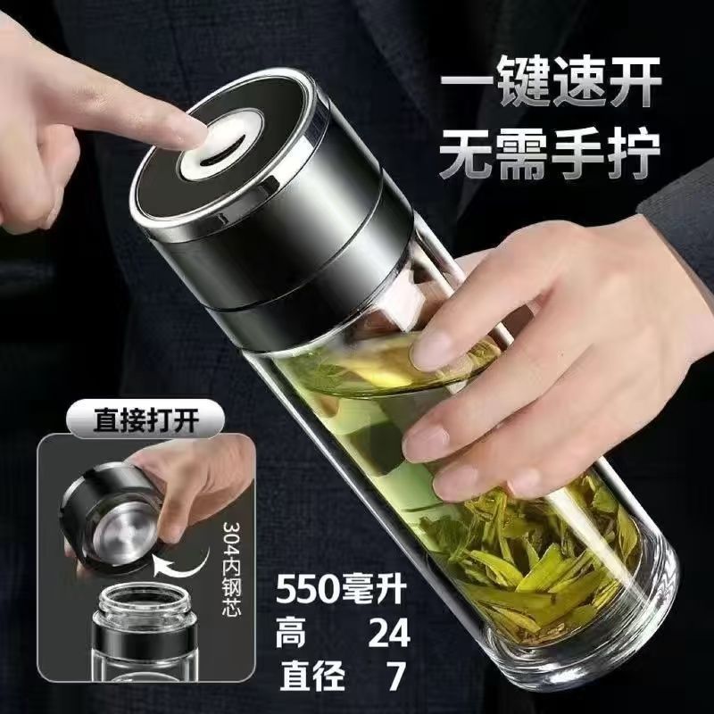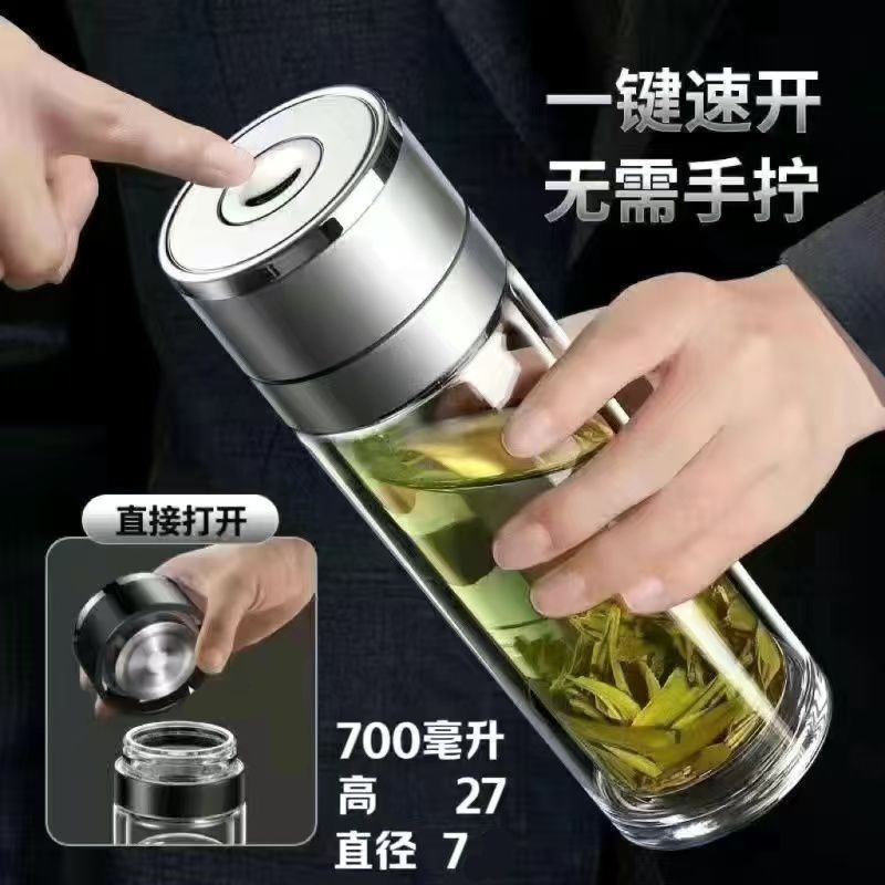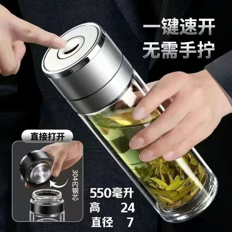 원 버튼 오픈 뚜껑 남자 물 컵 자동차 빠른 오픈 컵 차 물 분리 컵 새로운 고급 이중 층 고온 저항 유리스토어 가기