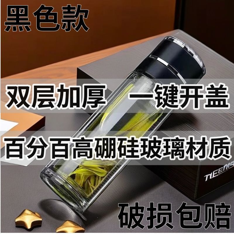 원 버튼 오픈 뚜껑 남자 물 컵 자동차 빠른 오픈 컵 차 물 분리 컵 새로운 고급 이중 층 고온 저항 유리
