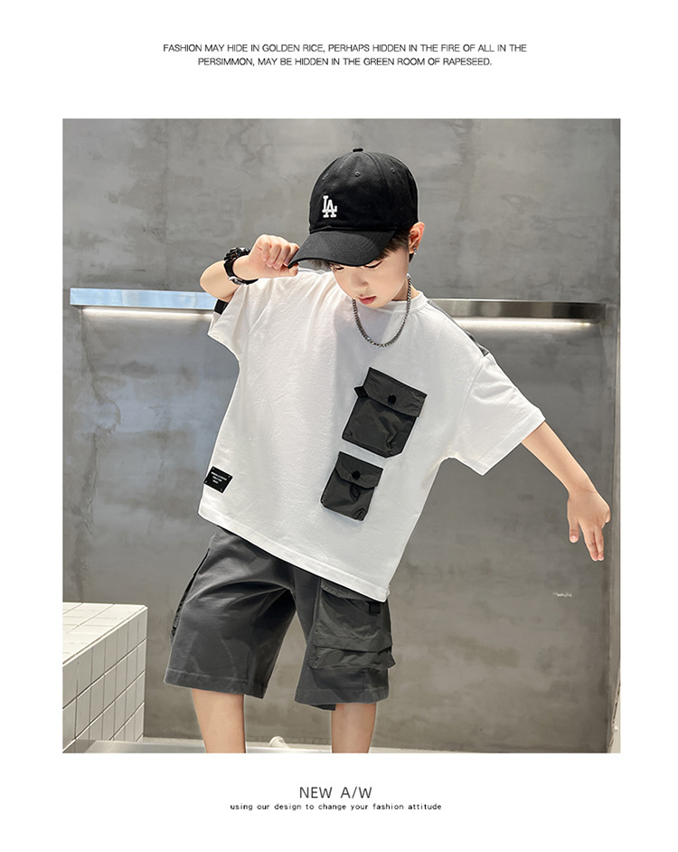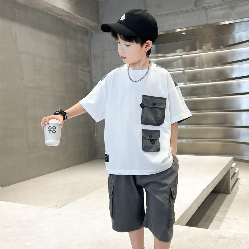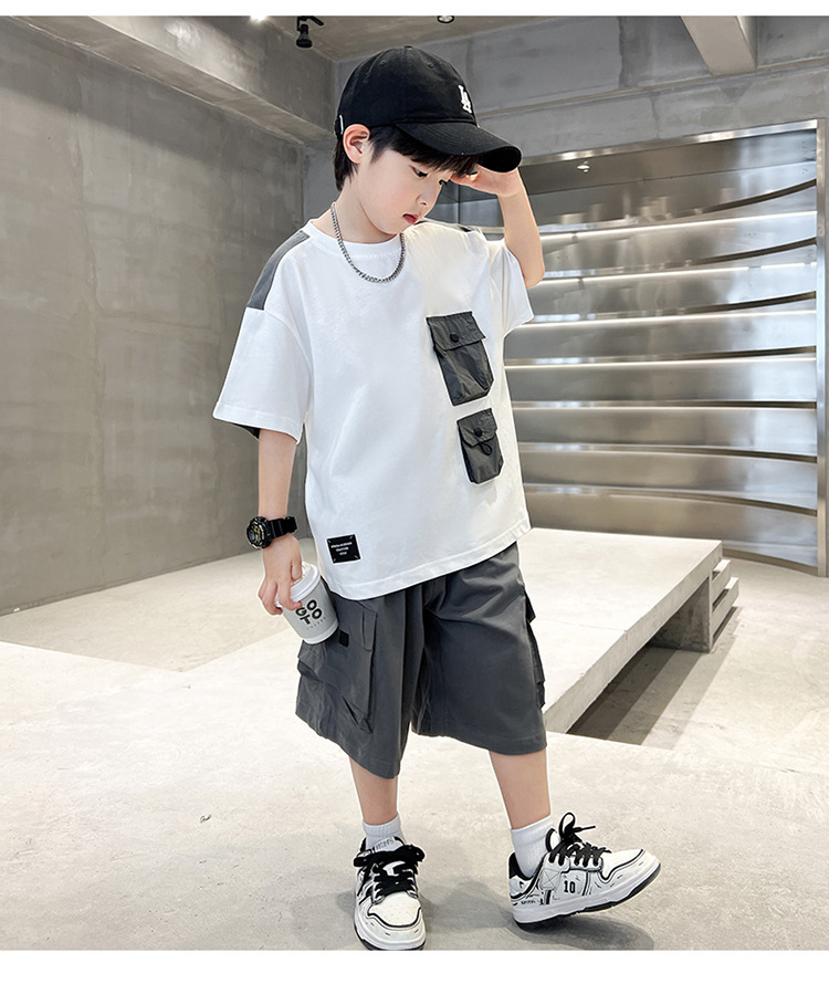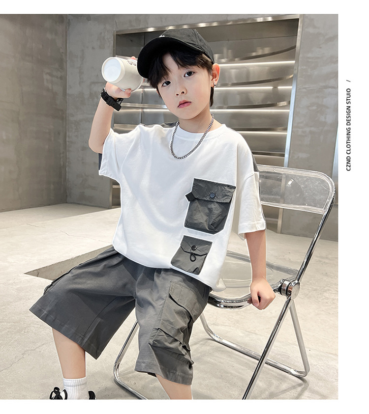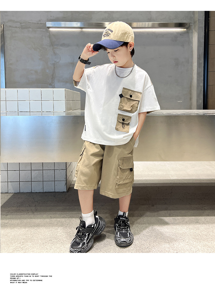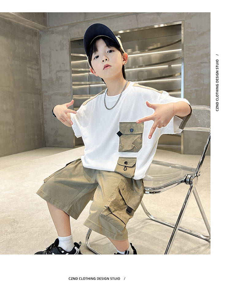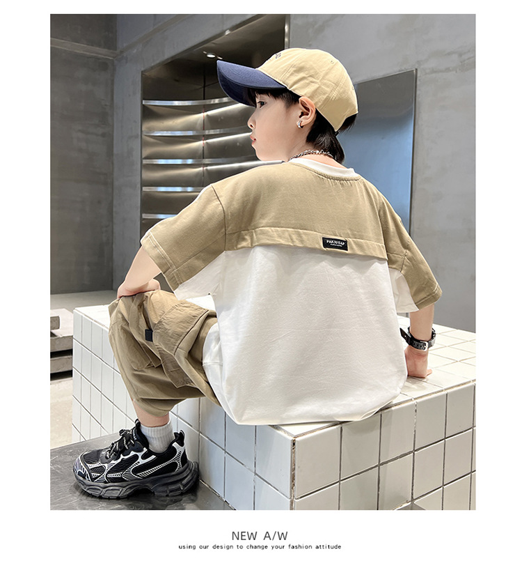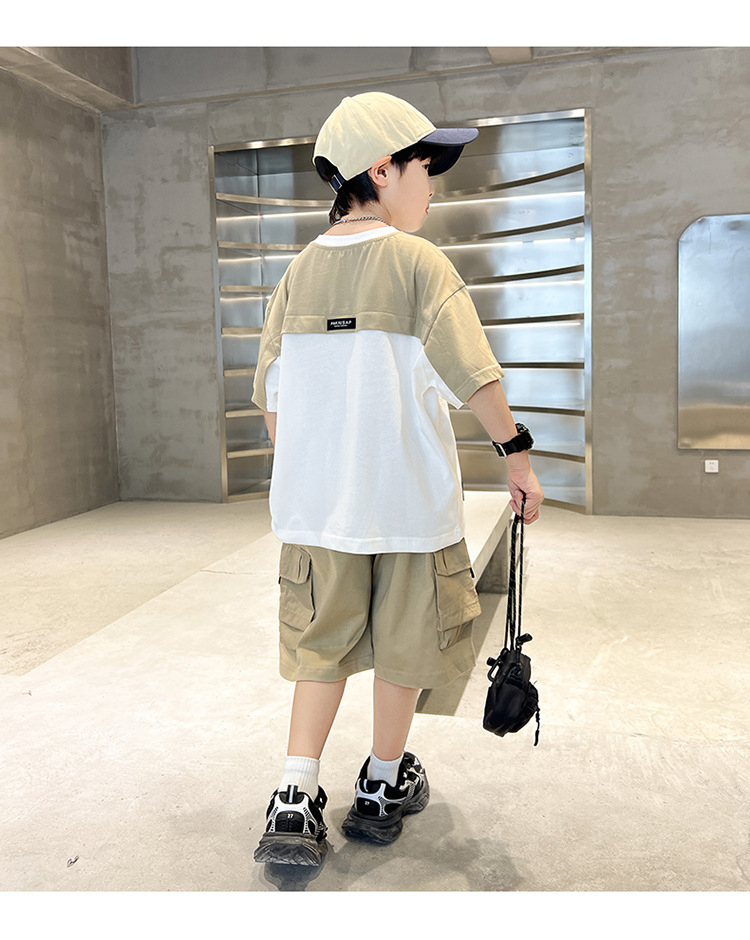 아동복 소년 여름 세트 2025 새로운 어린이 컬러 매칭 반팔 티셔츠 반바지 투피스 핸섬 트렌디 7