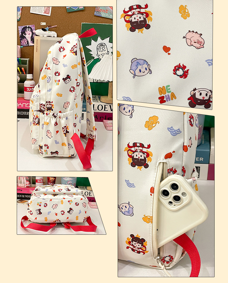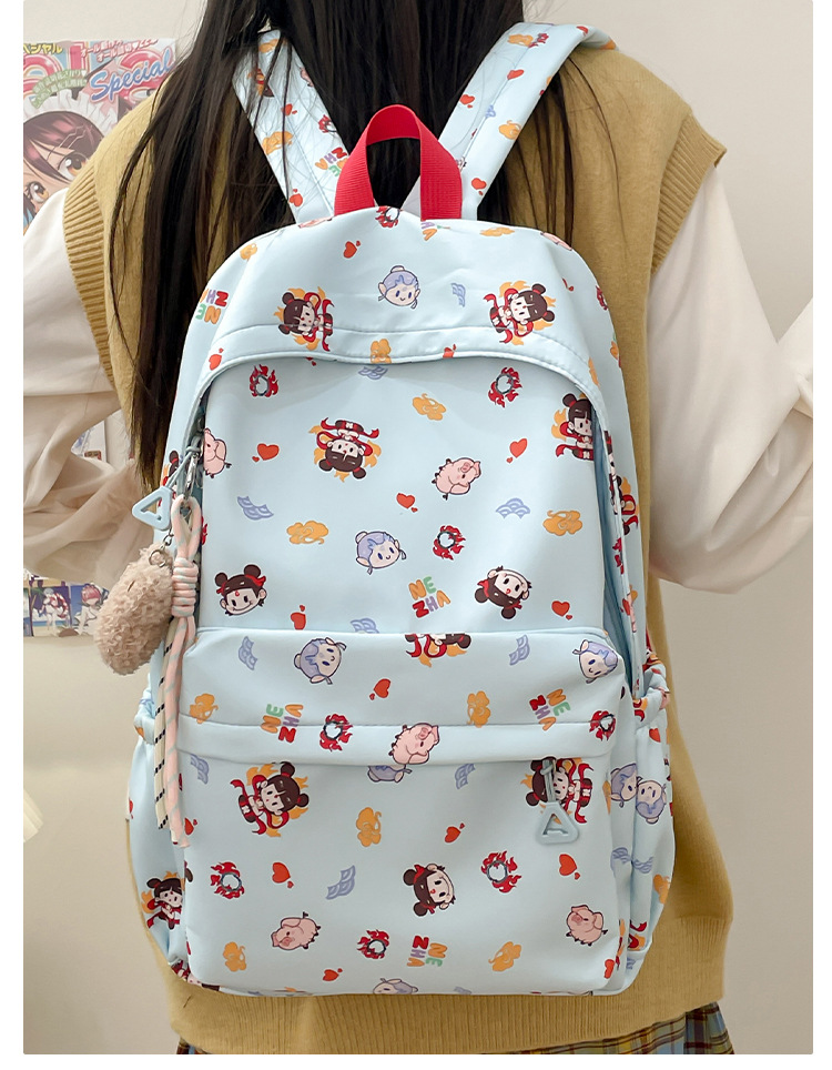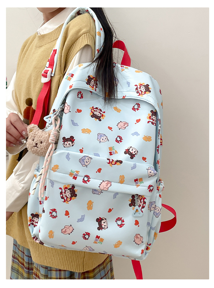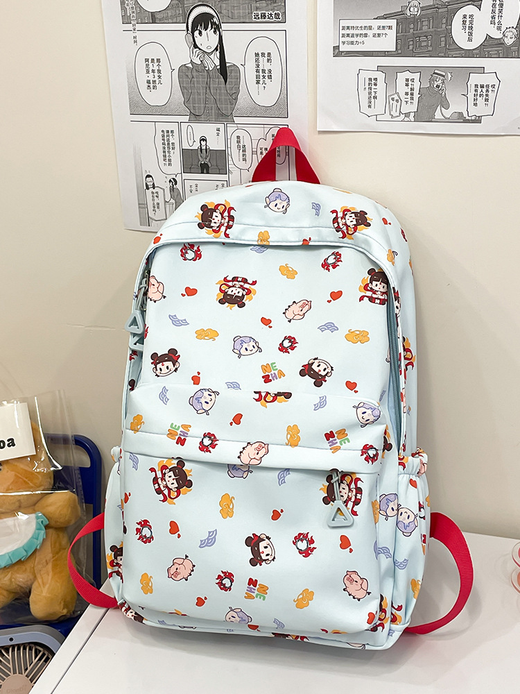 Guofeng Nezha 어깨 여성 초등학교 학생 귀여운 만화 Schoolbag 경량 대용량 배낭 달콤한 소녀 Schoolbag