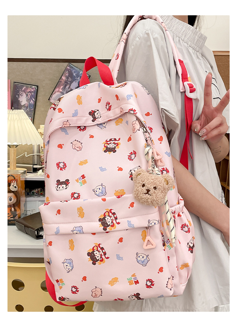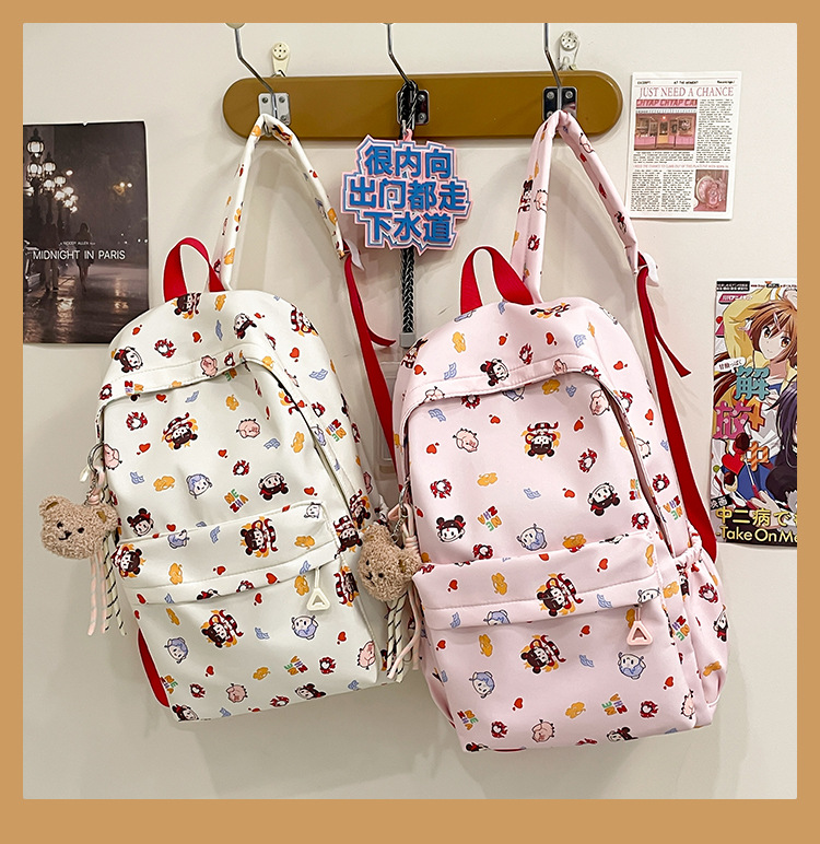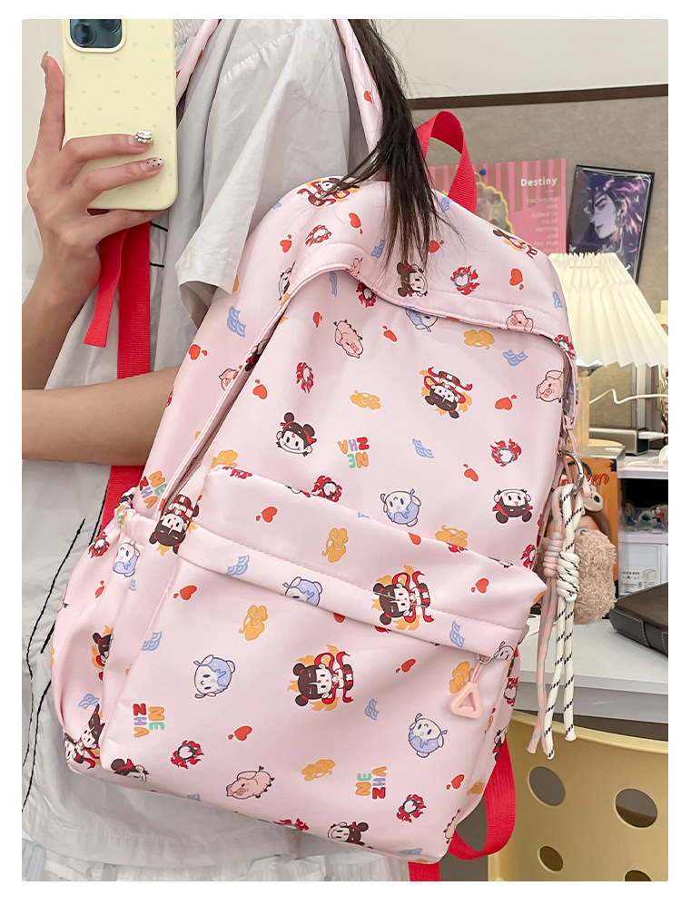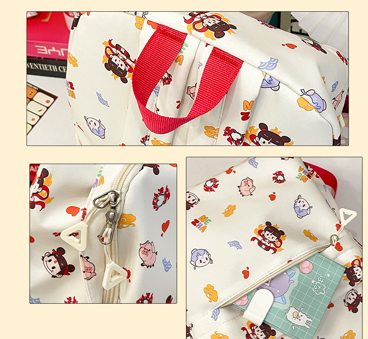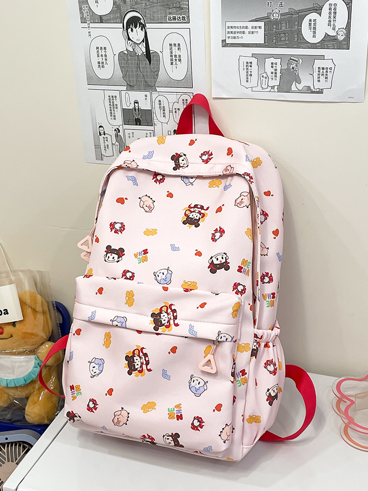 Guofeng Nezha 어깨 여성 초등학교 학생 귀여운 만화 Schoolbag 경량 대용량 배낭 달콤한 소녀 Schoolbag