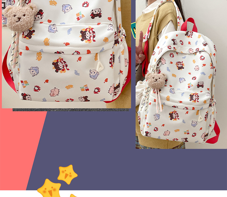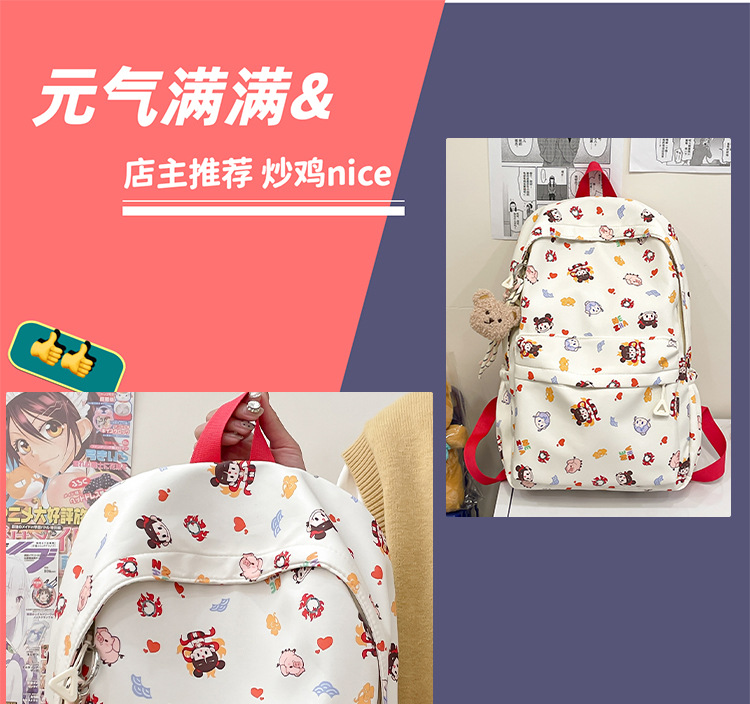 Guofeng Nezha 어깨 여성 초등학교 학생 귀여운 만화 Schoolbag 경량 대용량 배낭 달콤한 소녀 Schoolbag스토어 가기