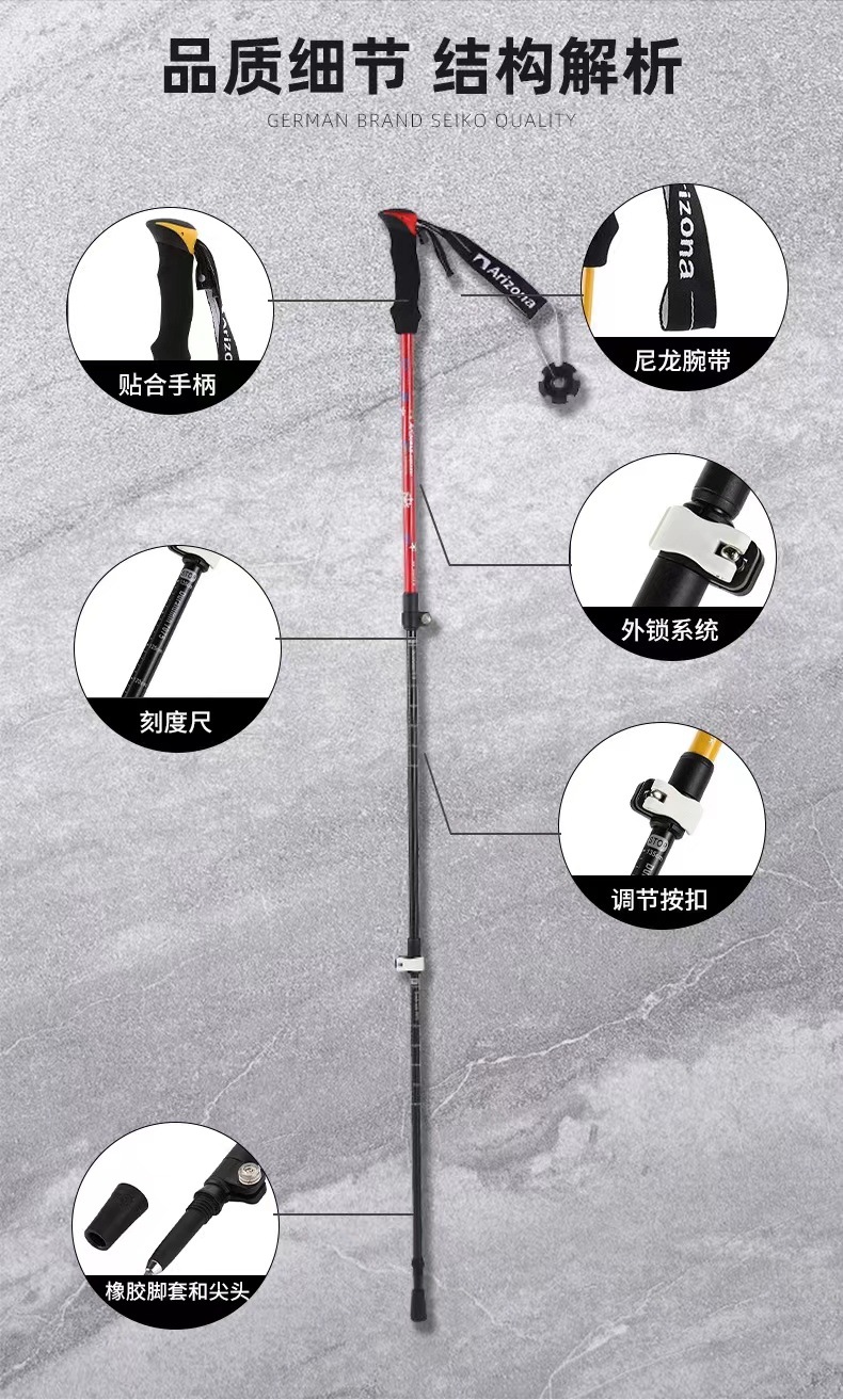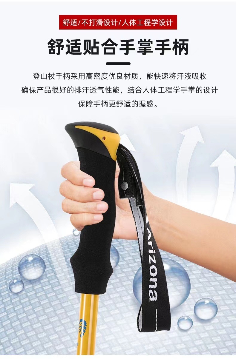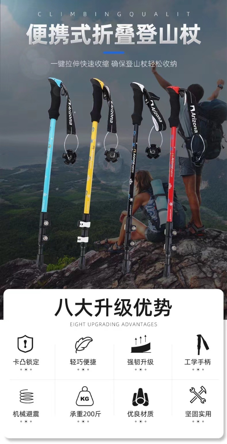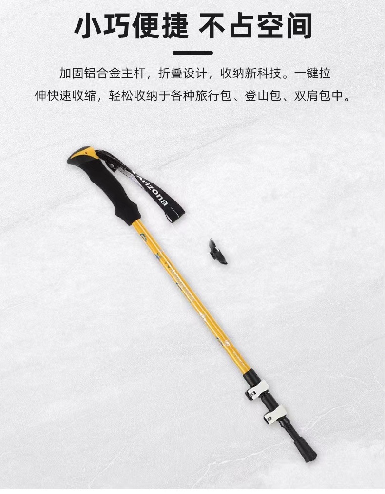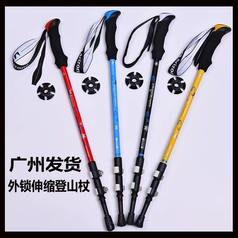 알루미늄 합금 트레킹 폴, 비접이식, 자기 방어 및 충격 방지, 3단 텔레스코픽 스트레이트 그립, 야외 하이킹 비상 생존