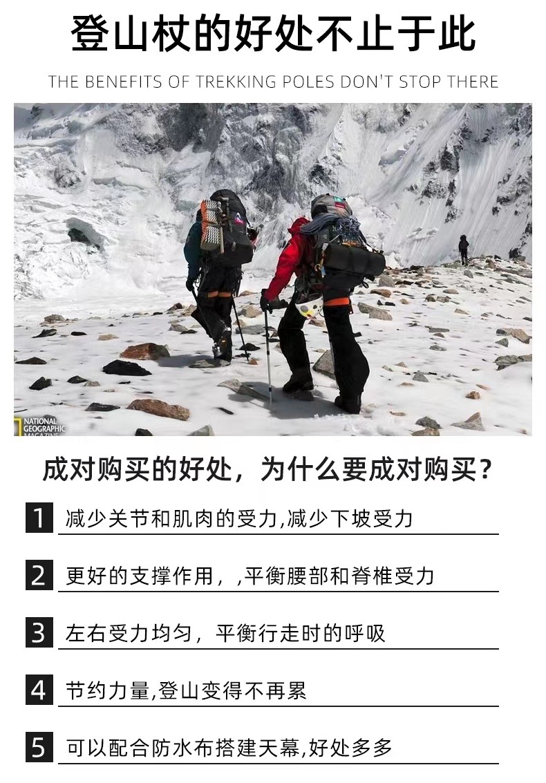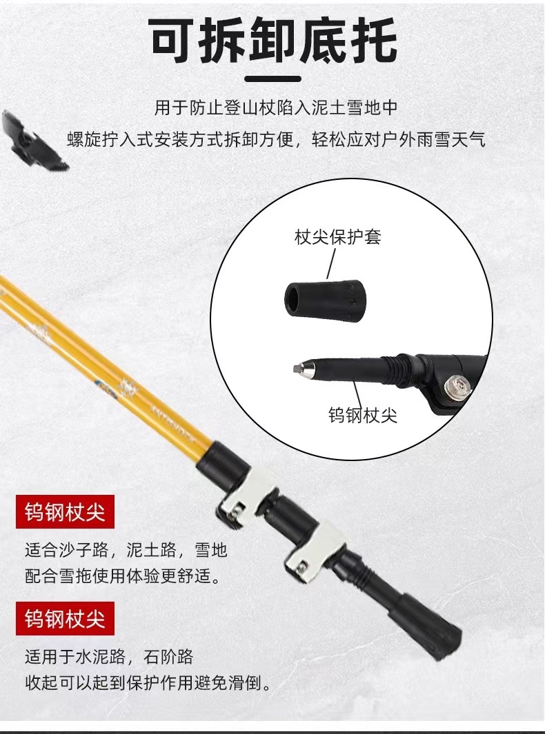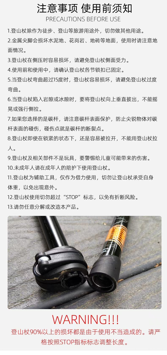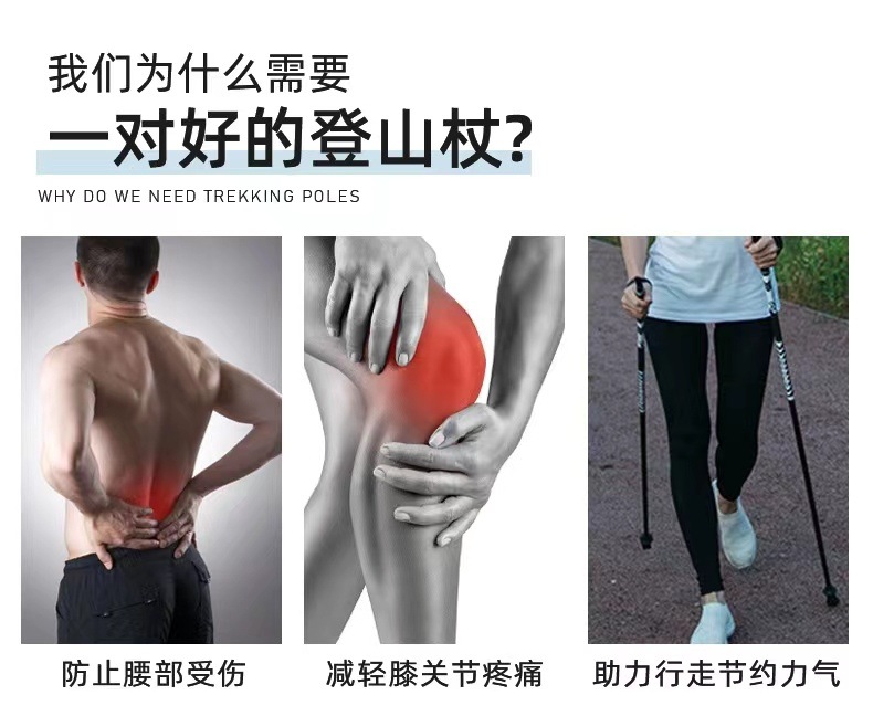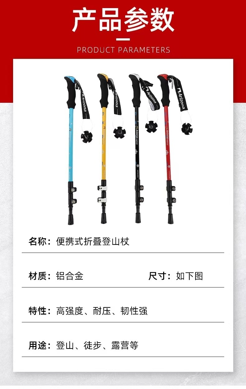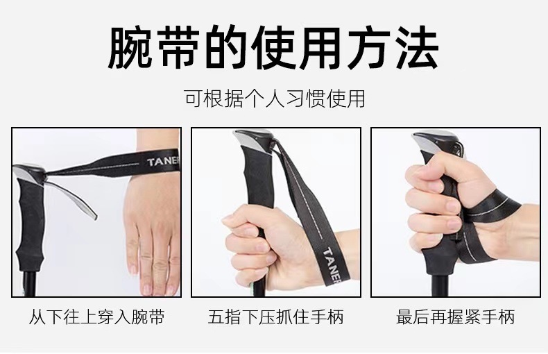 알루미늄 합금 트레킹 폴, 비접이식, 자기 방어 및 충격 방지, 3단 텔레스코픽 스트레이트 그립, 야외 하이킹 비상 생존