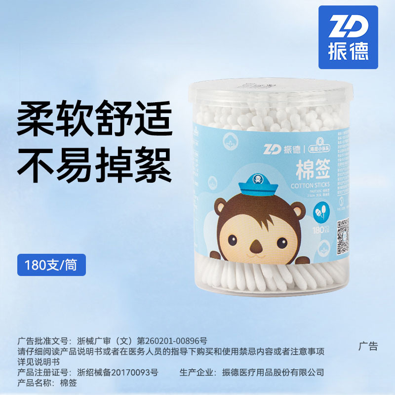 • Zhende 산모 및 유아 면봉(해저 작은 기둥)(어린이 일반 종이 스틱 양면 7.5cm) 180개/상자
