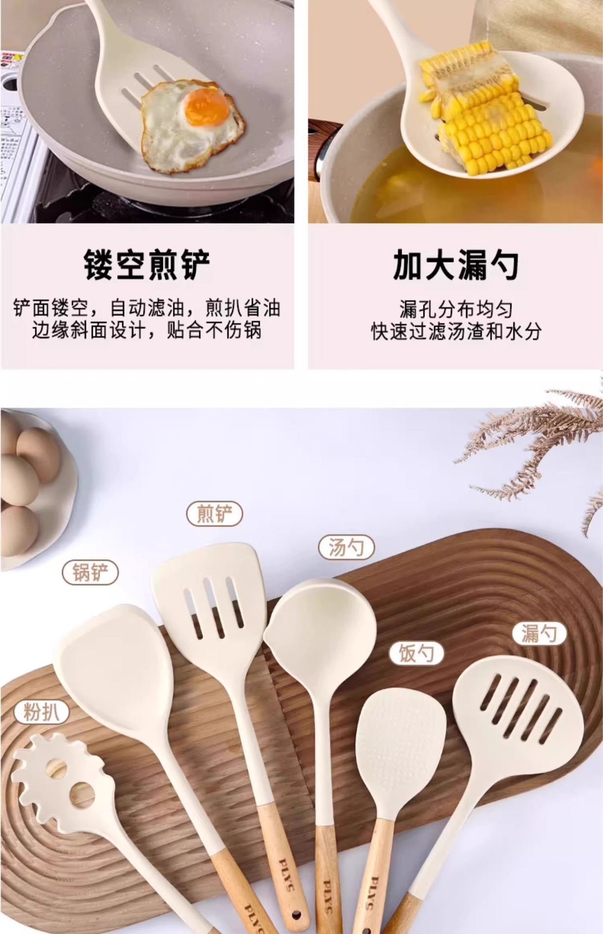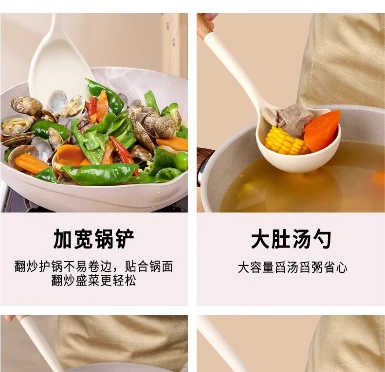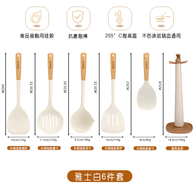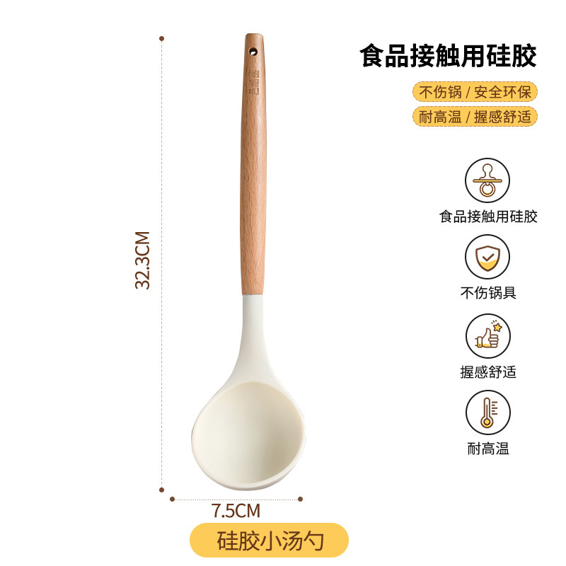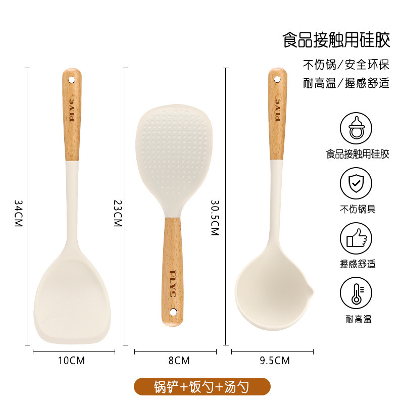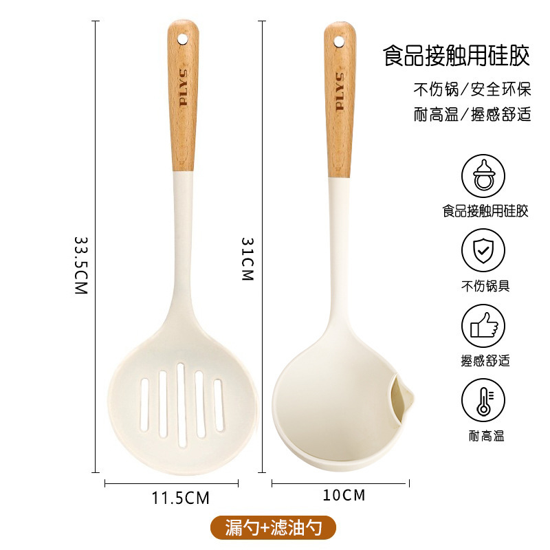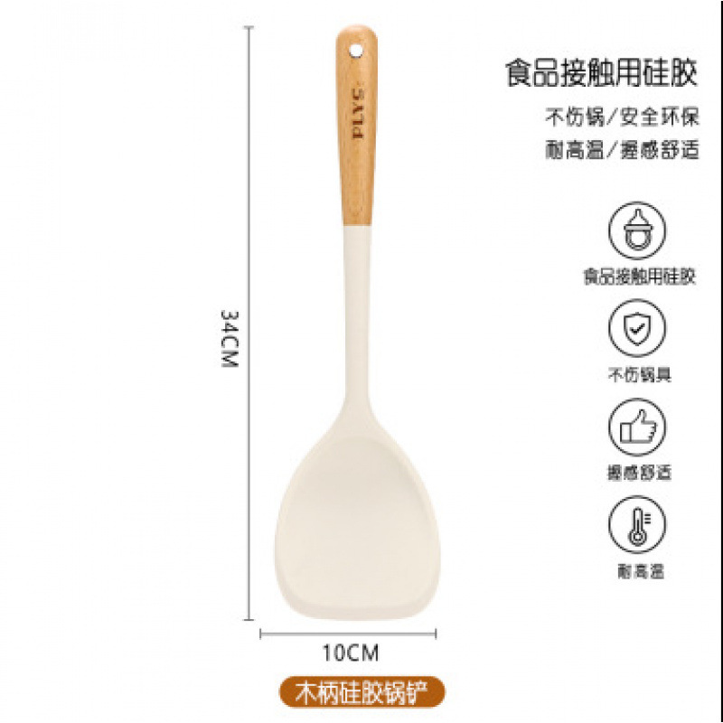 • 유백색 실리콘 주걱 + 나무 손잡이 튀김 주걱 + 수프 스푼
