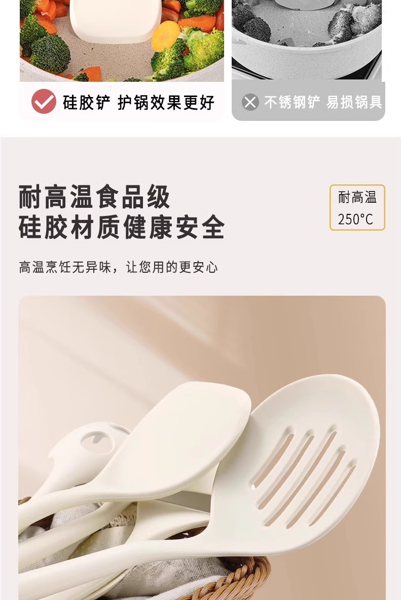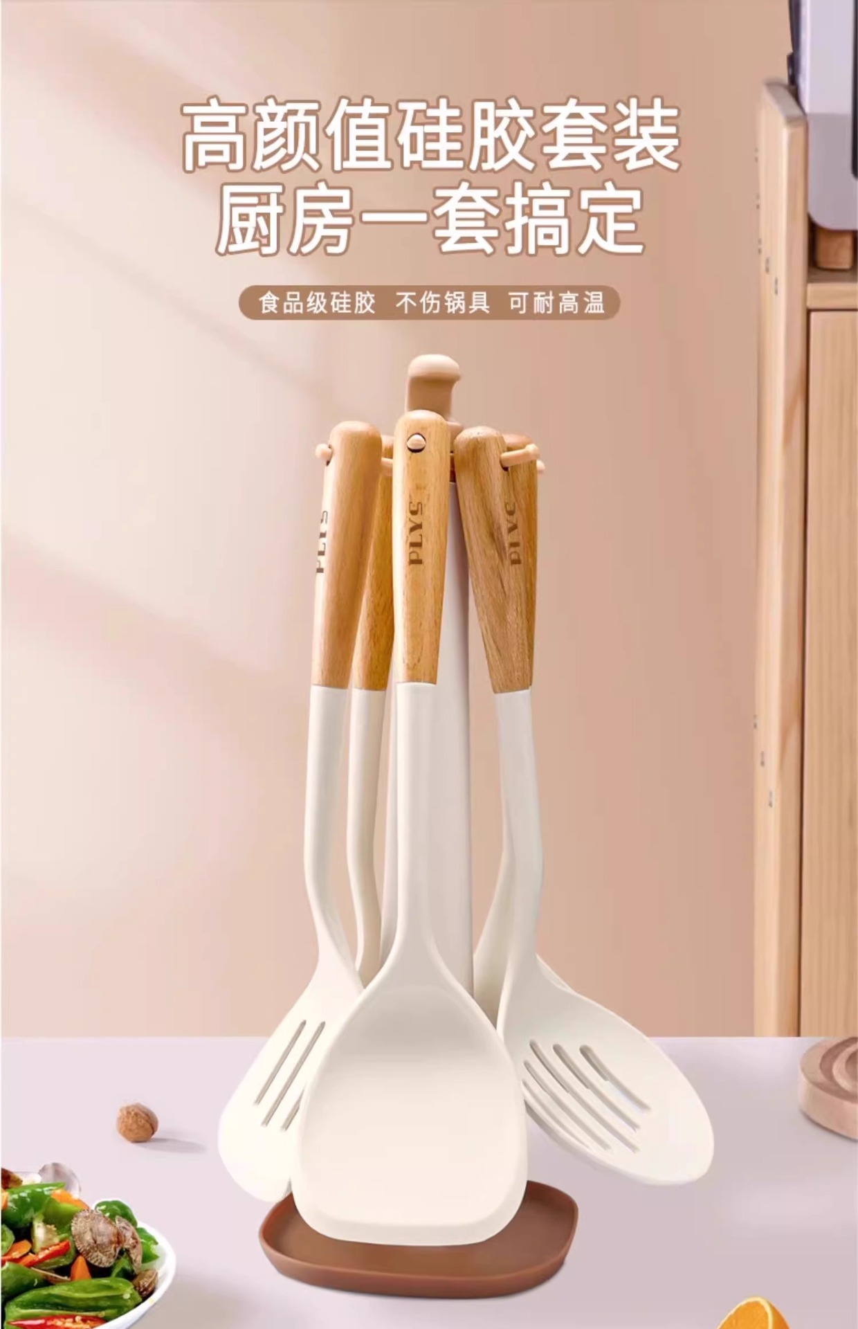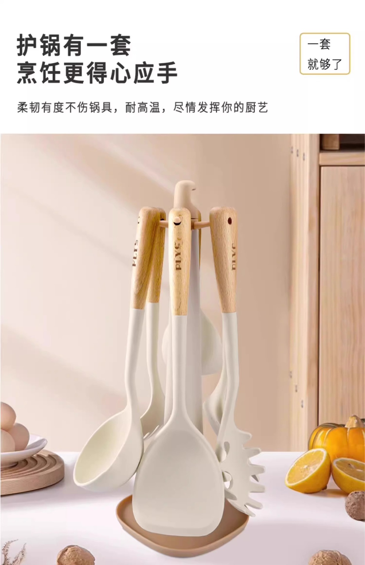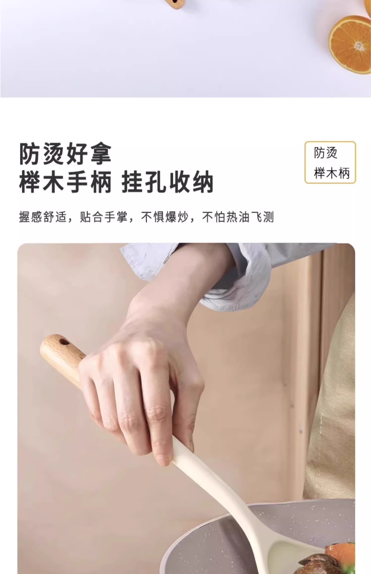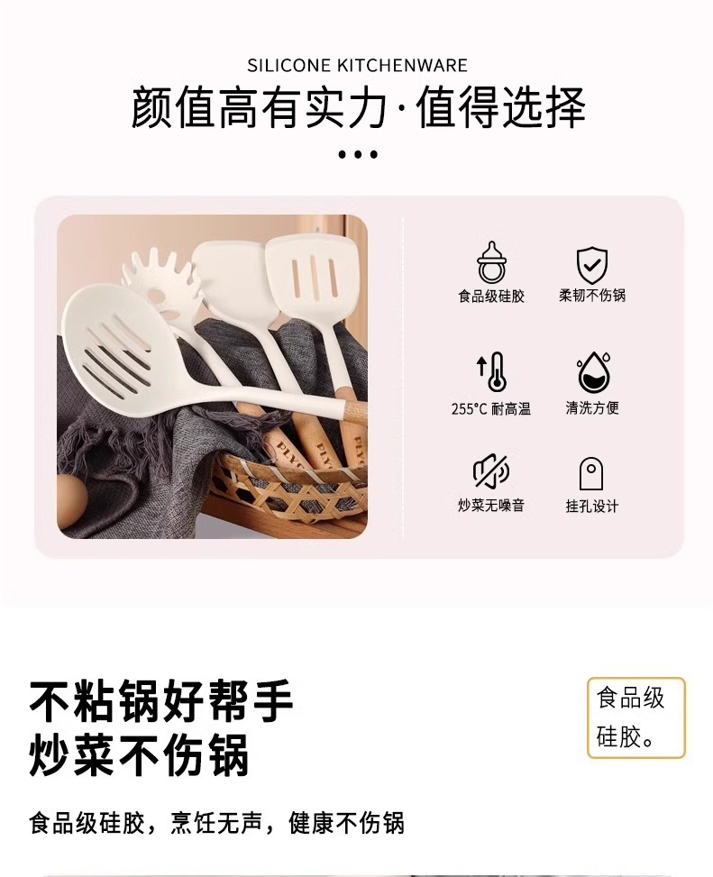 • 유백색 실리콘 주걱 + 나무 손잡이 튀김 주걱 + 수프 스푼