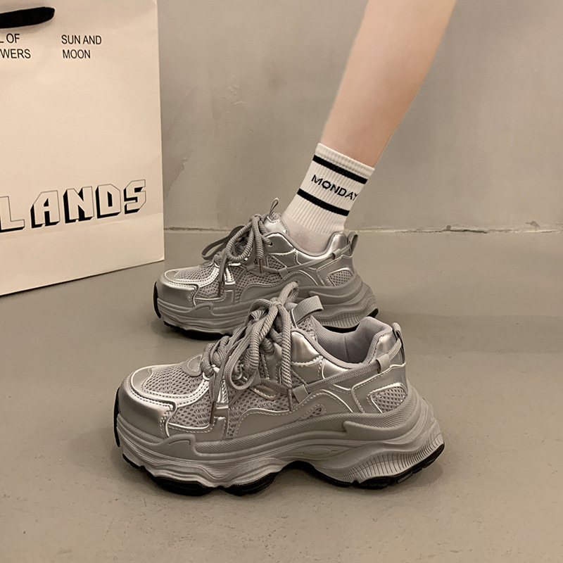 25년 봄 여름 인기 플랫폼 두꺼운 밑창 아빠 신발 여름 작은 사람들을 위한 메쉬 통기성 캐주얼 운동화