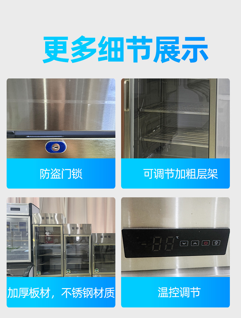 스테인레스 스틸 샘플 보관 쇼케이스 유치원 학교 상업용 소형 냉장 냉장고 잠금 장치가있는 식품 캐비닛