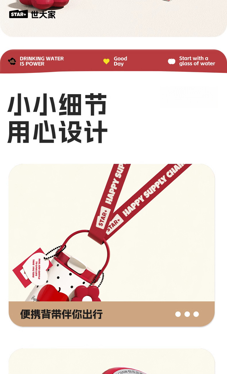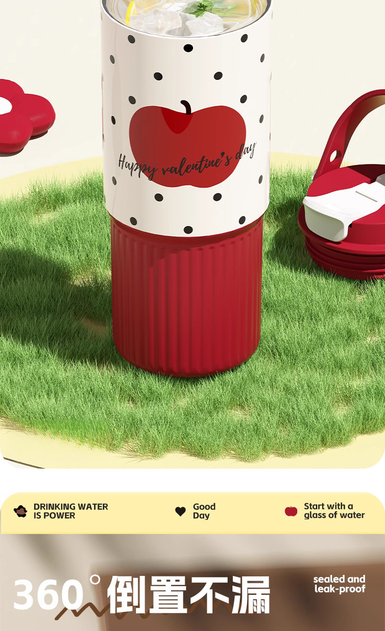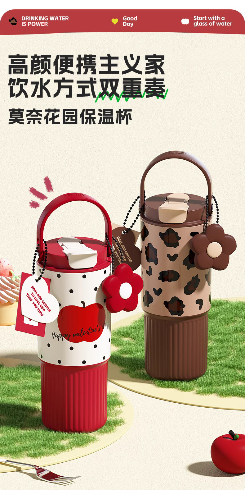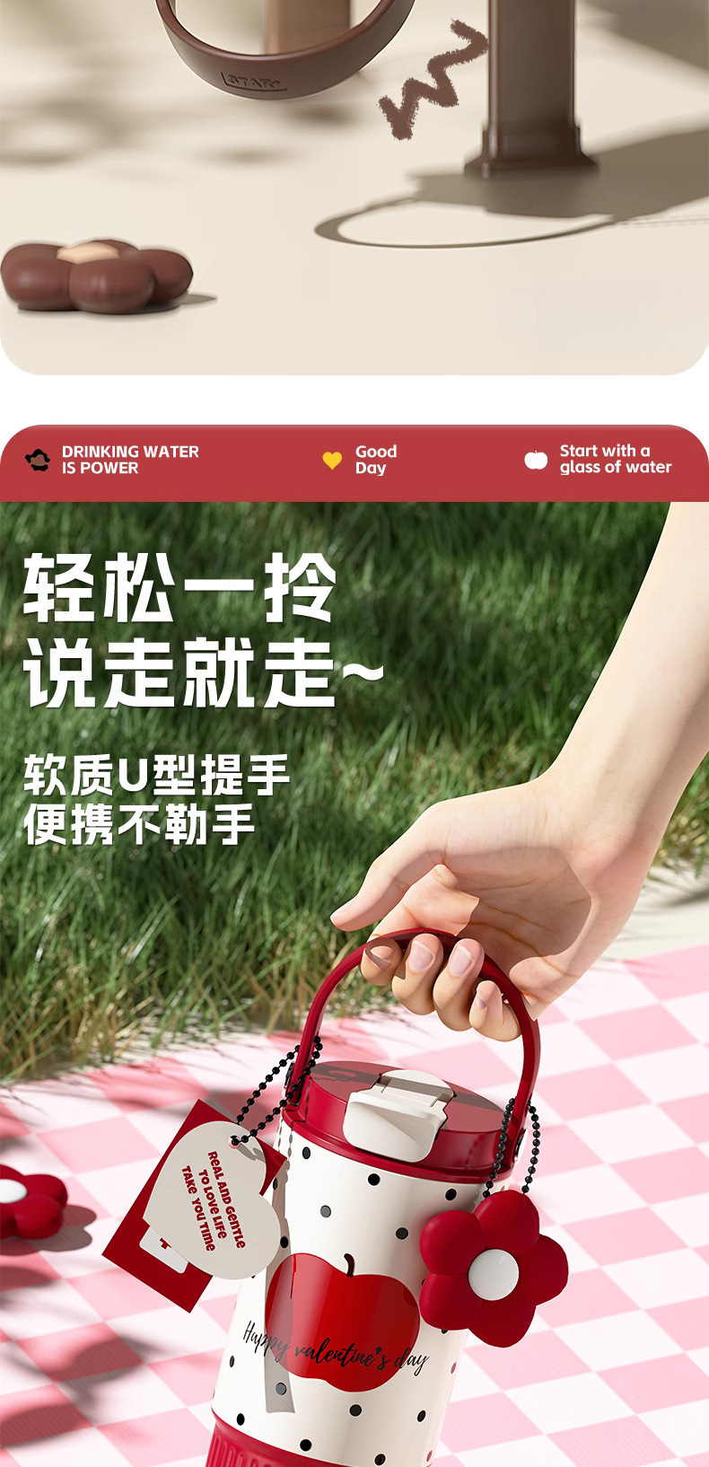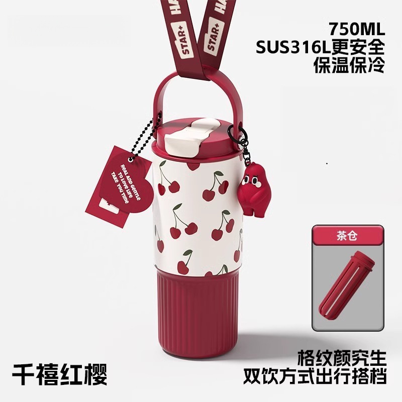 • 밀레니엄 레드 체리◆750ML【편안한 어깨끈 포함✚인형 펜던트✚밀짚 브러시 컵 브러시✚316 스테인레스 스틸 라이너]