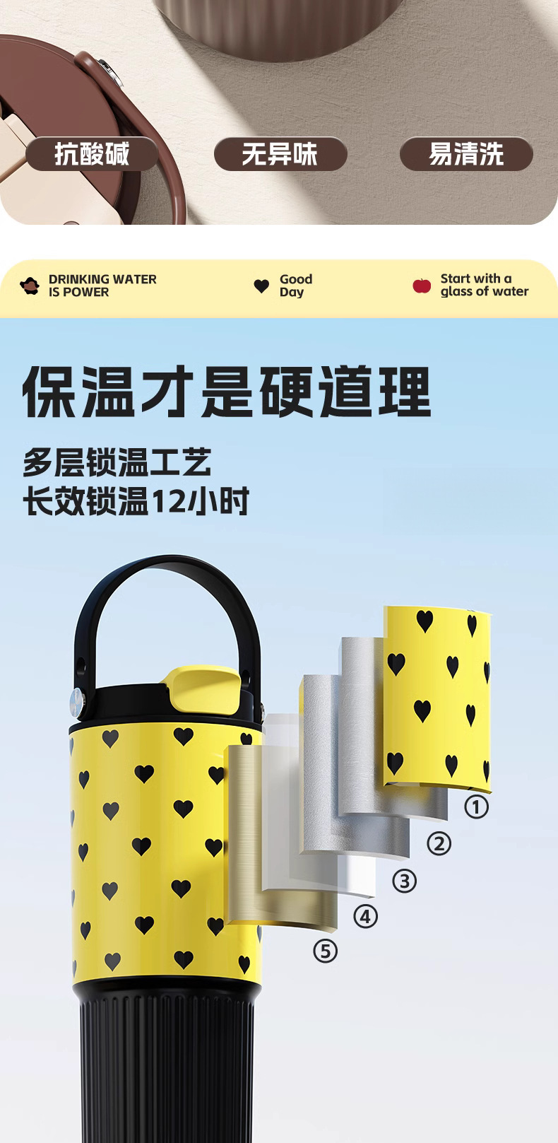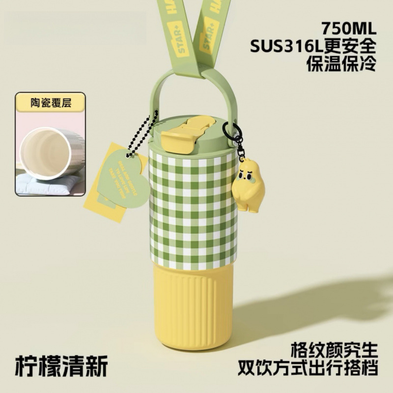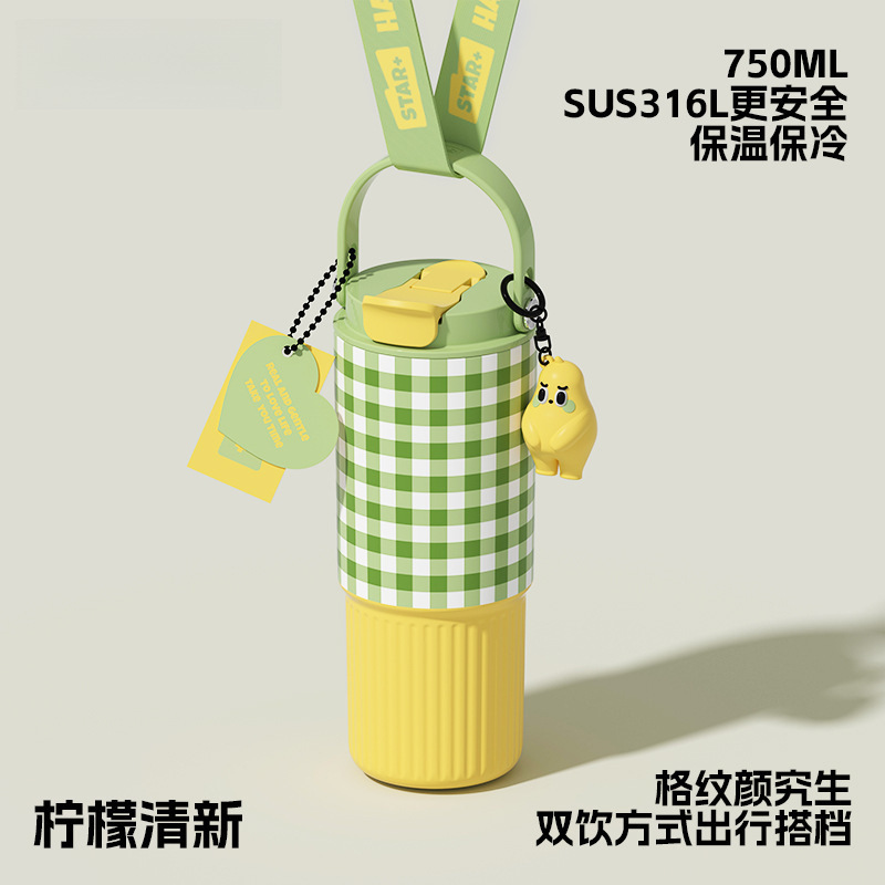 • 레몬 상큼한 ◆ 750ML【편안한 어깨끈 포함 ✚ 인형 펜던트 ✚ 밀짚 브러시 컵 브러시 ✚ 316 스테인레스 스틸 라이너]