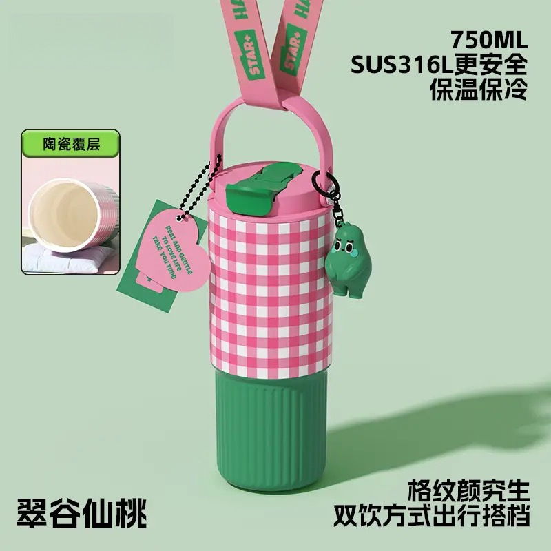 • 추이구 시안타오◆750ML【편안한 어깨끈 포함✚인형 펜던트✚밀짚 브러시 컵 브러시✚세라믹 코팅 내부 탱크]