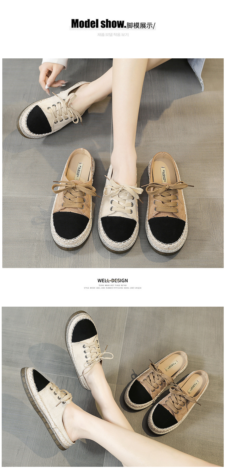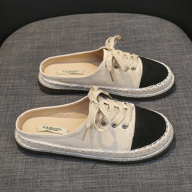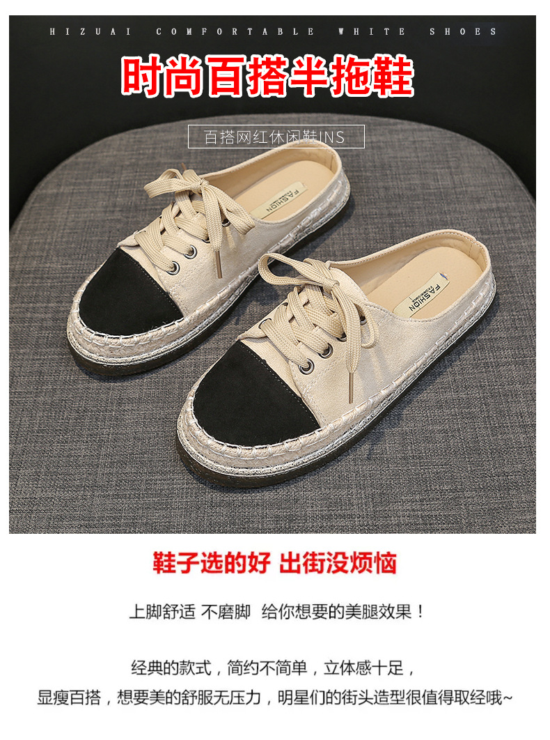 인터넷 유명 레이스 업 하프 슬리퍼 여성 봄과 여름 2025 새로운 복장 스포츠 캐주얼 스니커즈 게으른 사람들 어부 신발스토어 가기