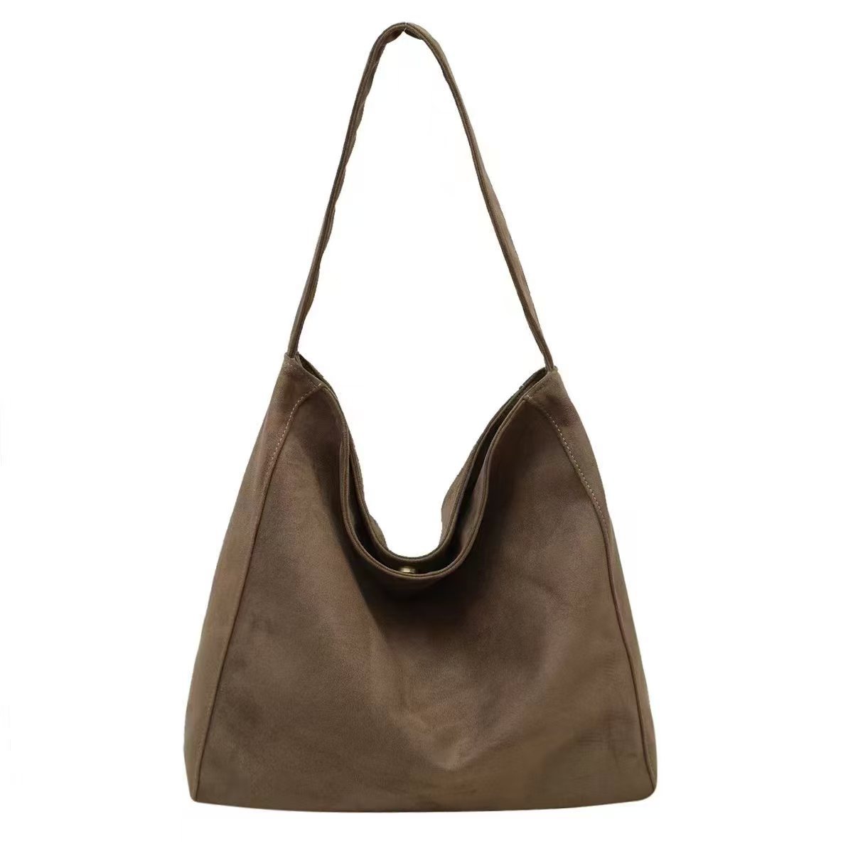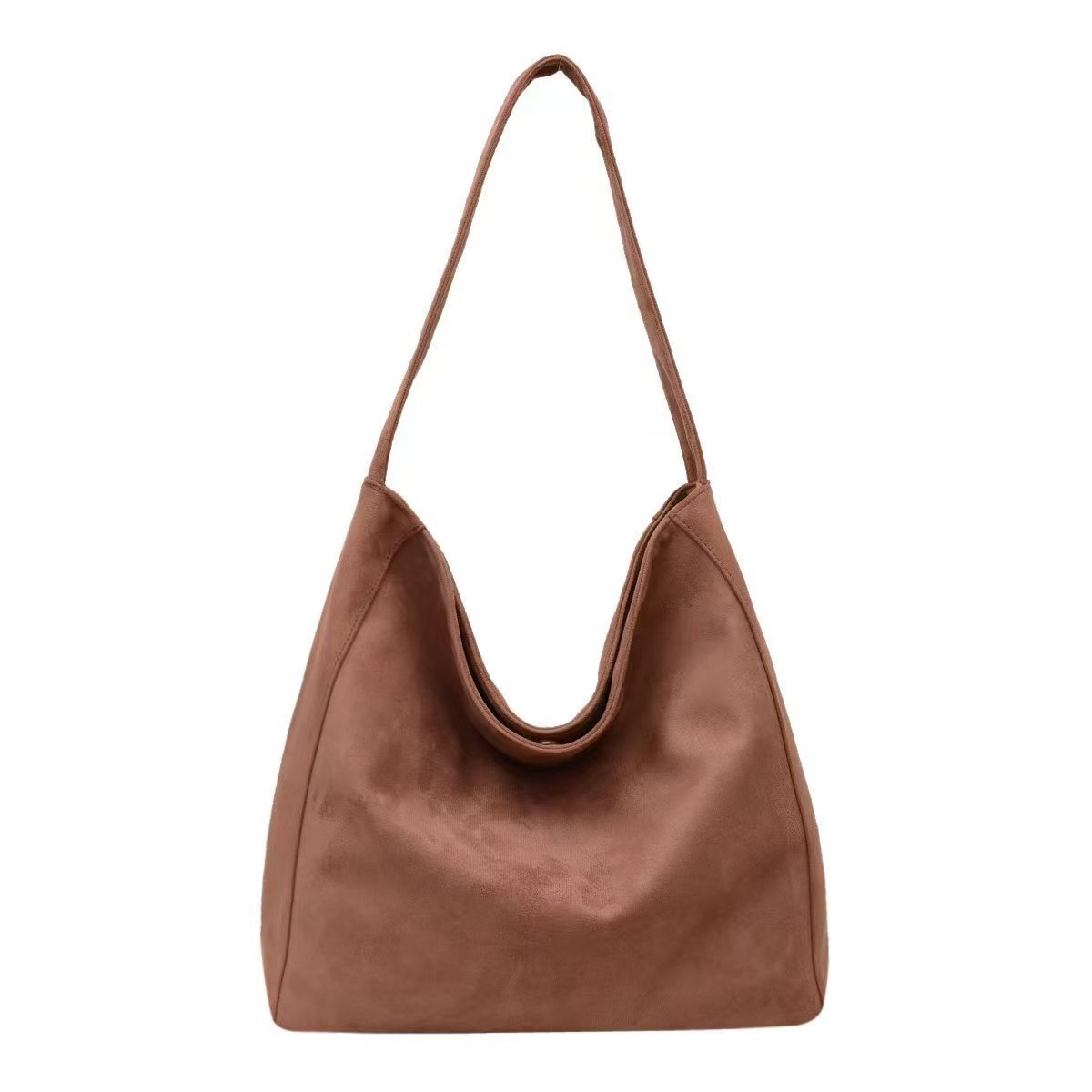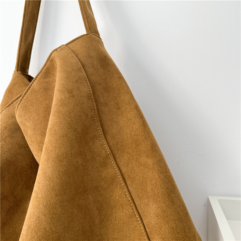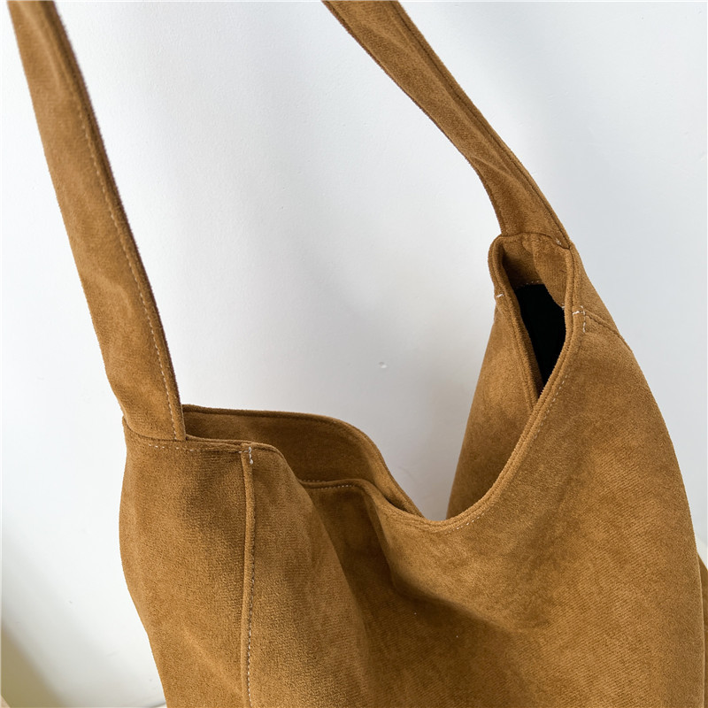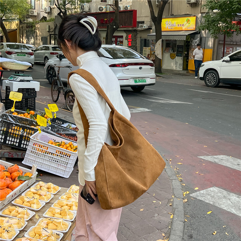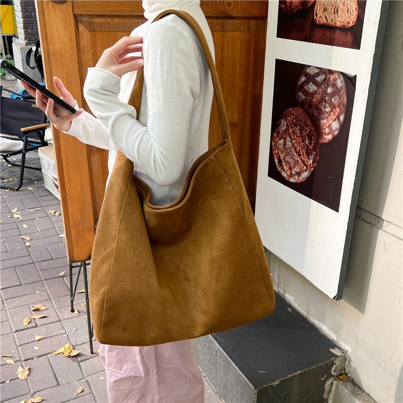 새로운 다재다능한 복고풍 반투명 통근 토트 백 한국 트렌드 심플 패션 대용량 스웨이드 숄더백