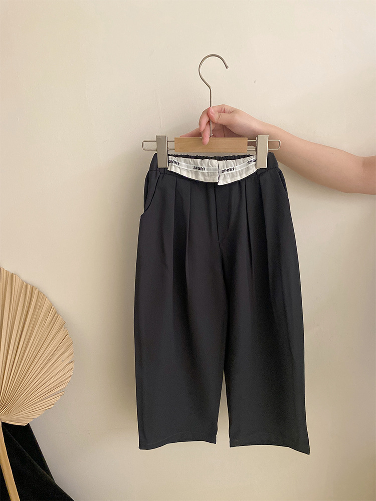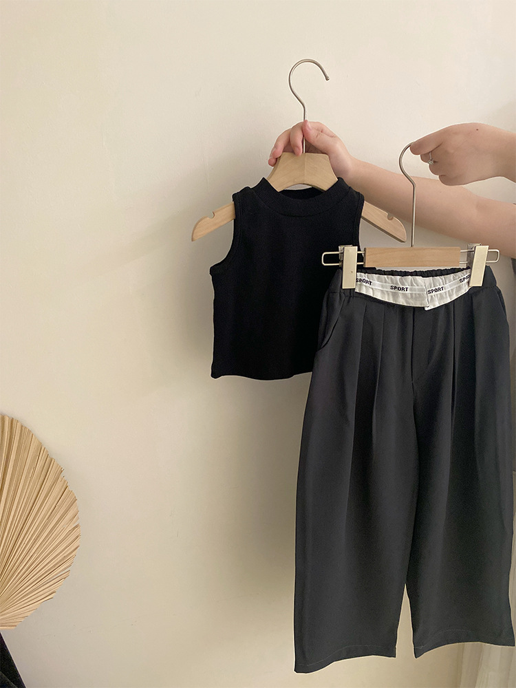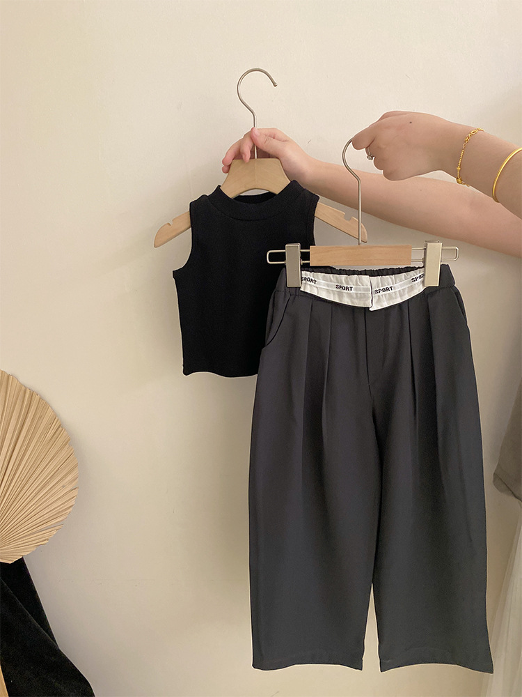 소녀들의 여름 2025 새로운 올 매치 솔리드 컬러 조끼 민소매 탑 draped 스트레이트 세트 바지 어린이 투피스 세트