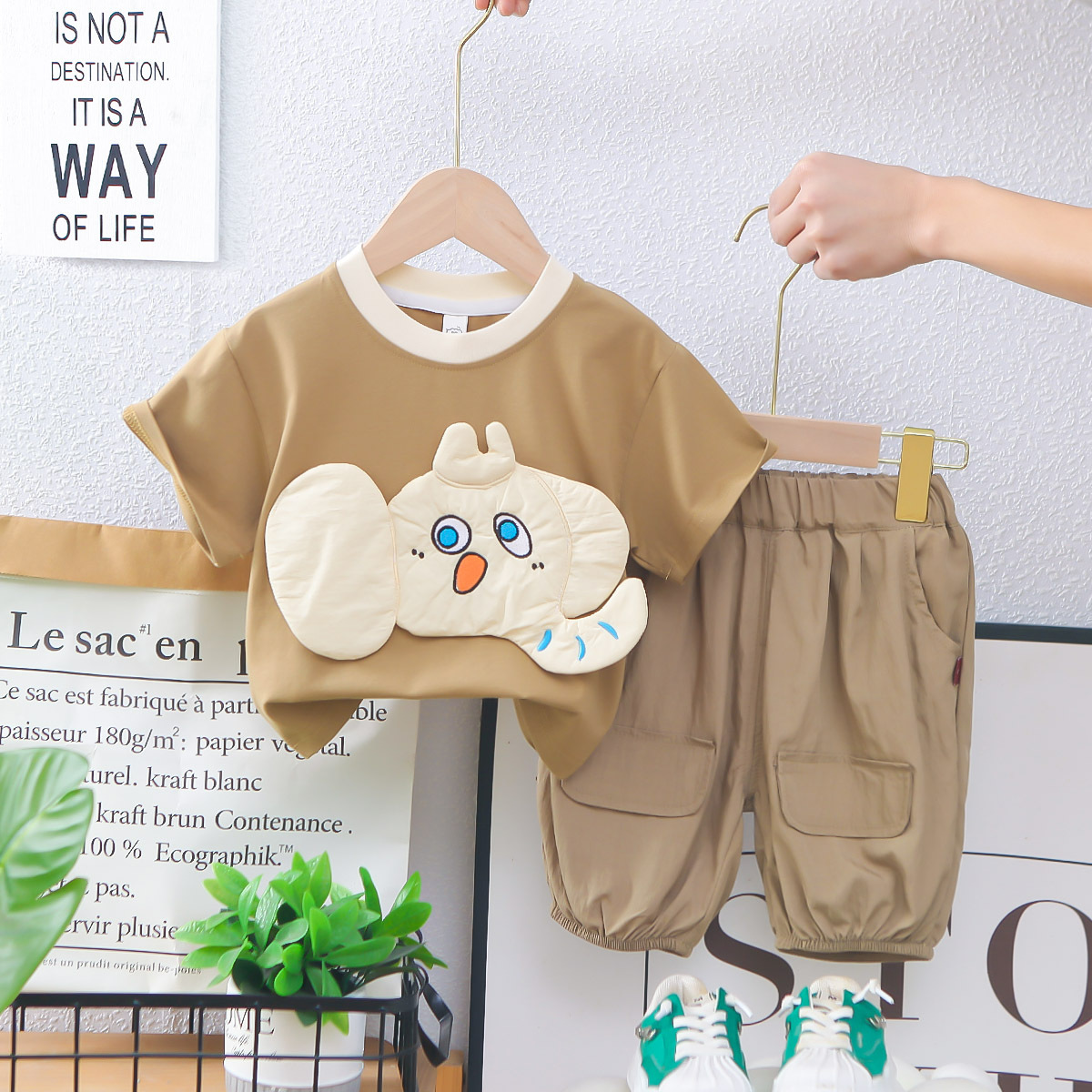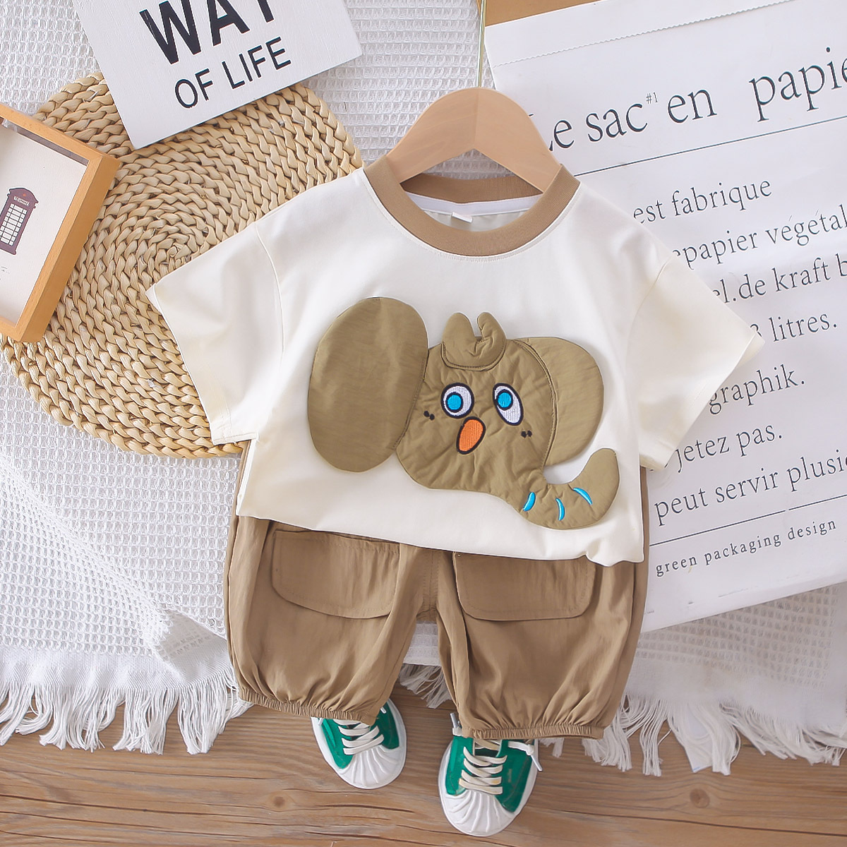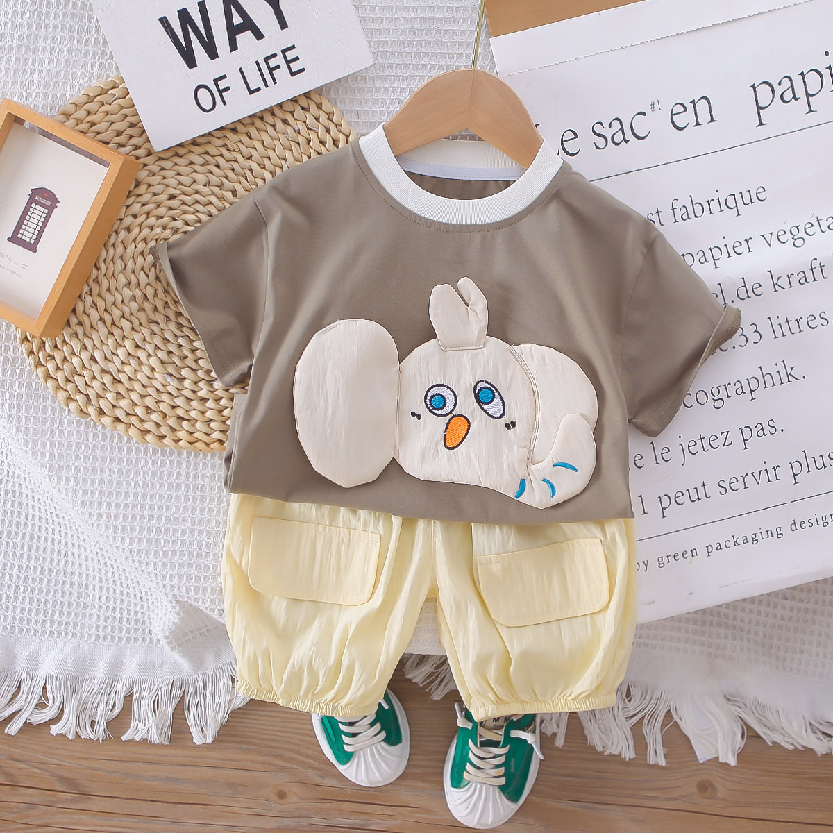 • MH 귀여운 코끼리 반팔 투피스 세트 카키