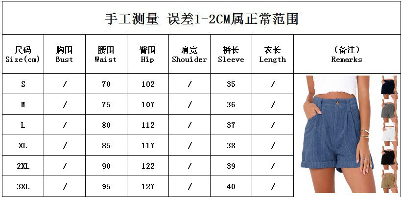 2025 봄 여름 유럽과 미국의 새로운 스타일 Amazon 크로스보더 여성 캐주얼 바지 하이 웨이스트 솔리드 컬러 코듀로이 루즈 반바지스토어 가기