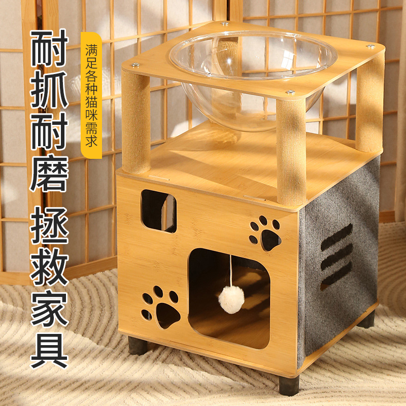 • TV 캐비닛 고양이 집 공간 캡슐 더블 레이어 나무 색상
