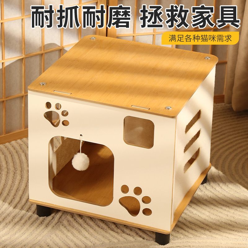 • TV 캐비닛 고양이 집 - 단일 레이어 로그 색상