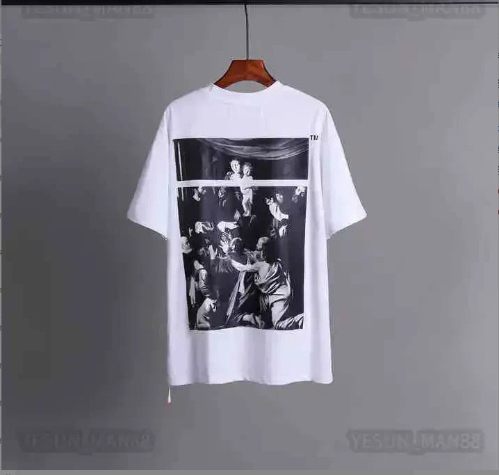 OFF 테이프 화살표 프린트 반팔 남성 OW 빅사이즈 커플 반팔 여성 WHITE스토어 가기