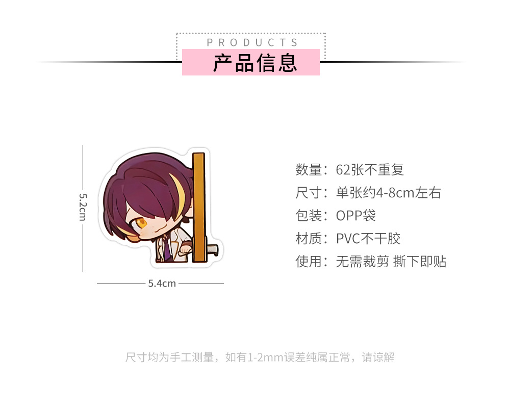 产品采用防水材质,进口海德堡高清印刷、覆膜,贴纸按形状模切完好,不用担心自己裁剪地歪歪扭扭