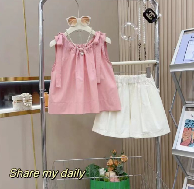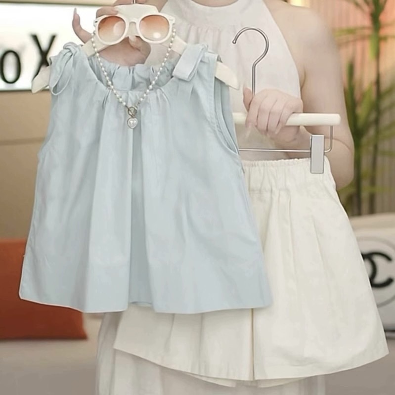 여자 여름 정장 2025 새로운 스타일 어린이 여름 옷 민소매 여자 반바지 아동 의류 투피스 양복 여름스토어 가기
