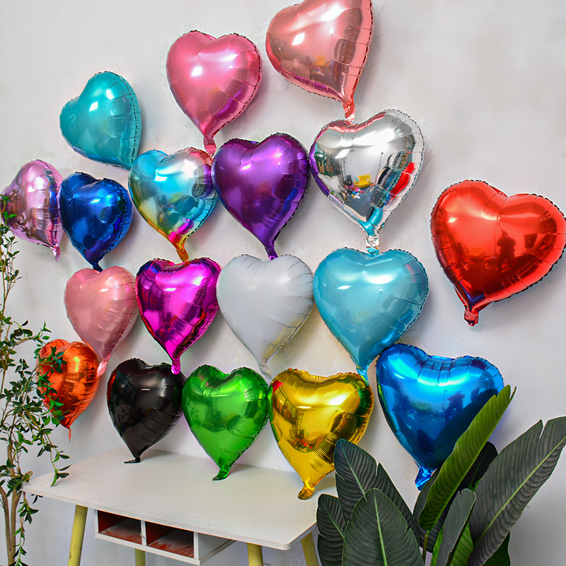 18inch 단색 하트 알루미늄 필름 풍선 결혼식 발렌타인 데이 장식 하트 모양 풍선 결혼식 방 장식