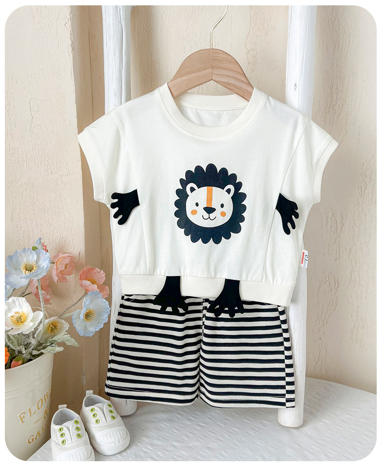 Wuxing Zhili 아동복 아기의 여름 착용 만화 귀여운 분할 세트 만화 두 조각 여름 세트 소년 소녀스토어 가기