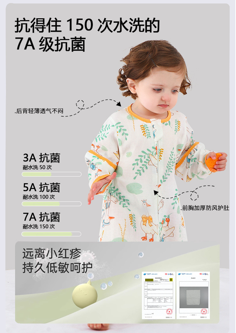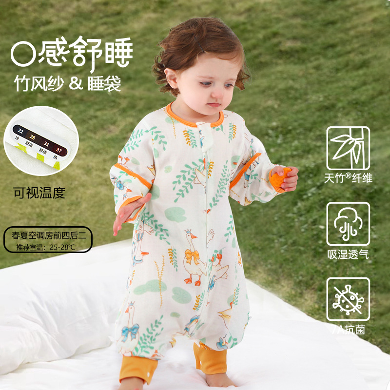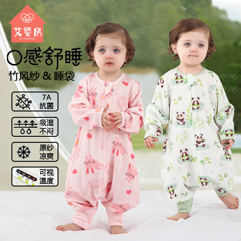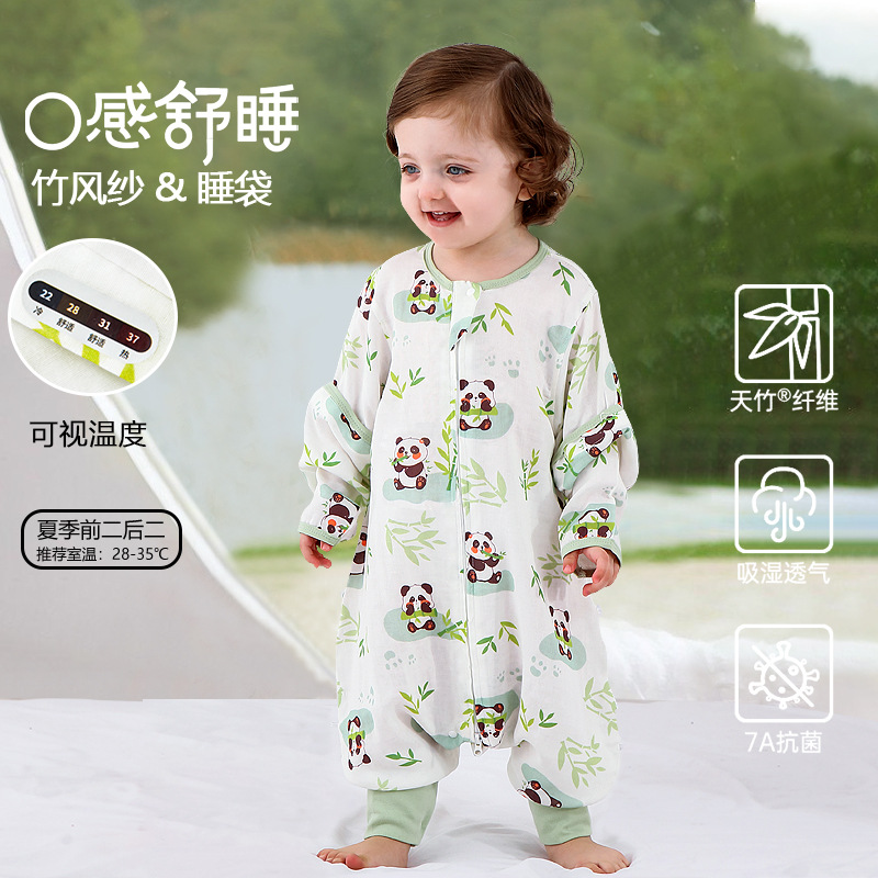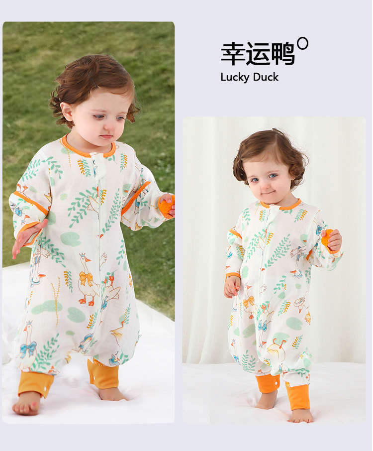 아기 거즈 슬리핑 백 봄과 가을과 여름에 쪼개진 다리가있는 어린이 대나무면 슬리핑 백