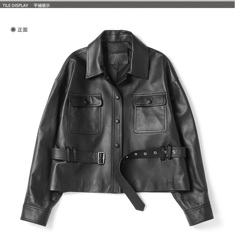 Song Jia의 봄, 가을 여성 정품 양가죽 가죽 자켓 짧은 복고풍 슬림 여성 의류