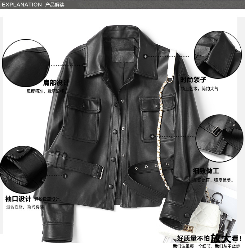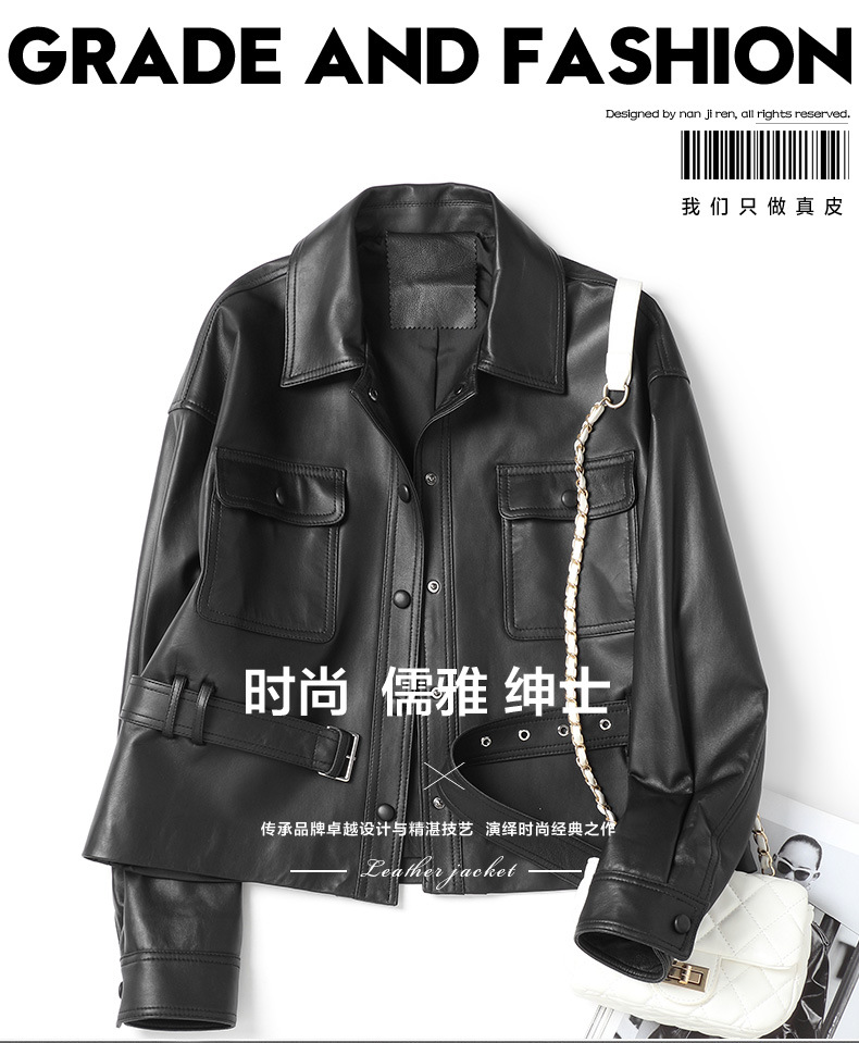 Song Jia의 봄, 가을 여성 정품 양가죽 가죽 자켓 짧은 복고풍 슬림 여성 의류스토어 가기
