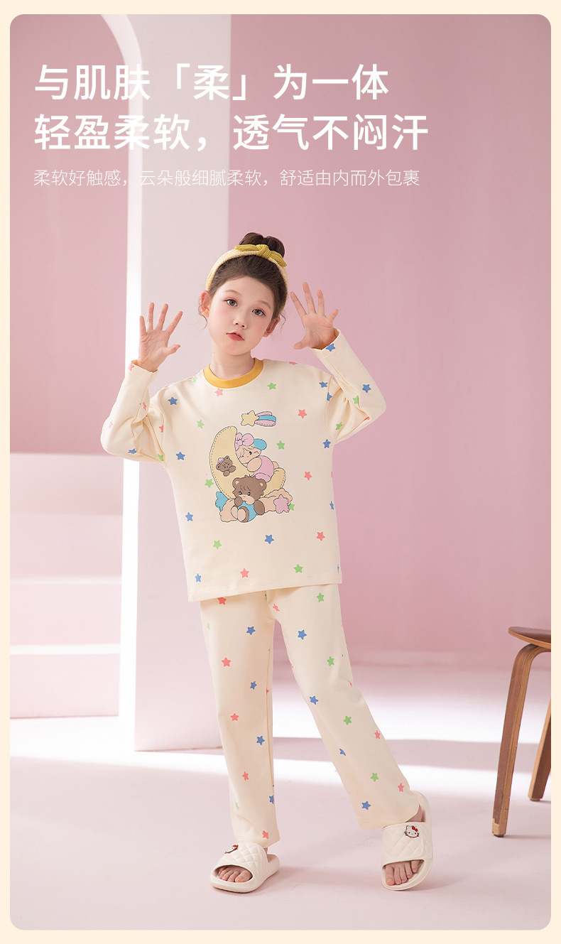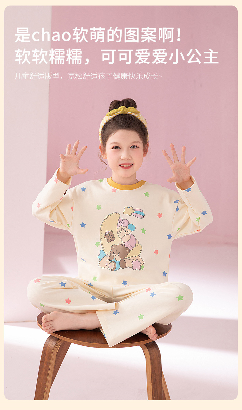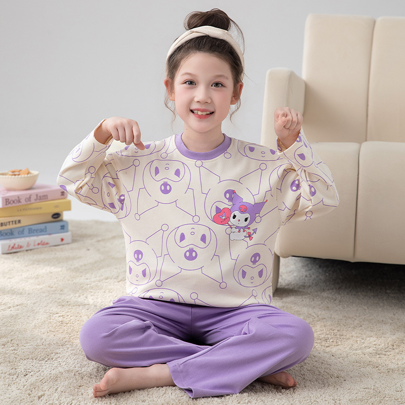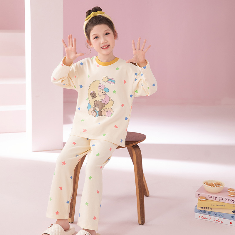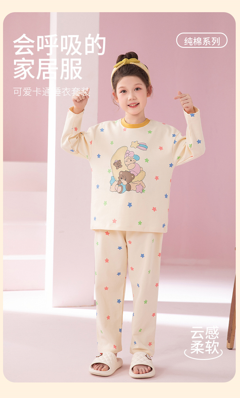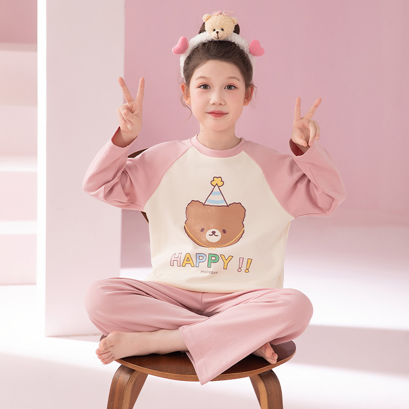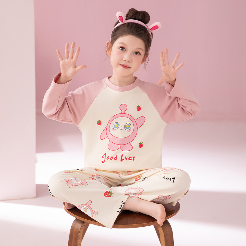 2024 새로운 가을 어린이 잠옷 소녀 긴팔 순수 코튼 봄 큰 어린이 소녀 가정 의류 초등학교 잠옷스토어 가기