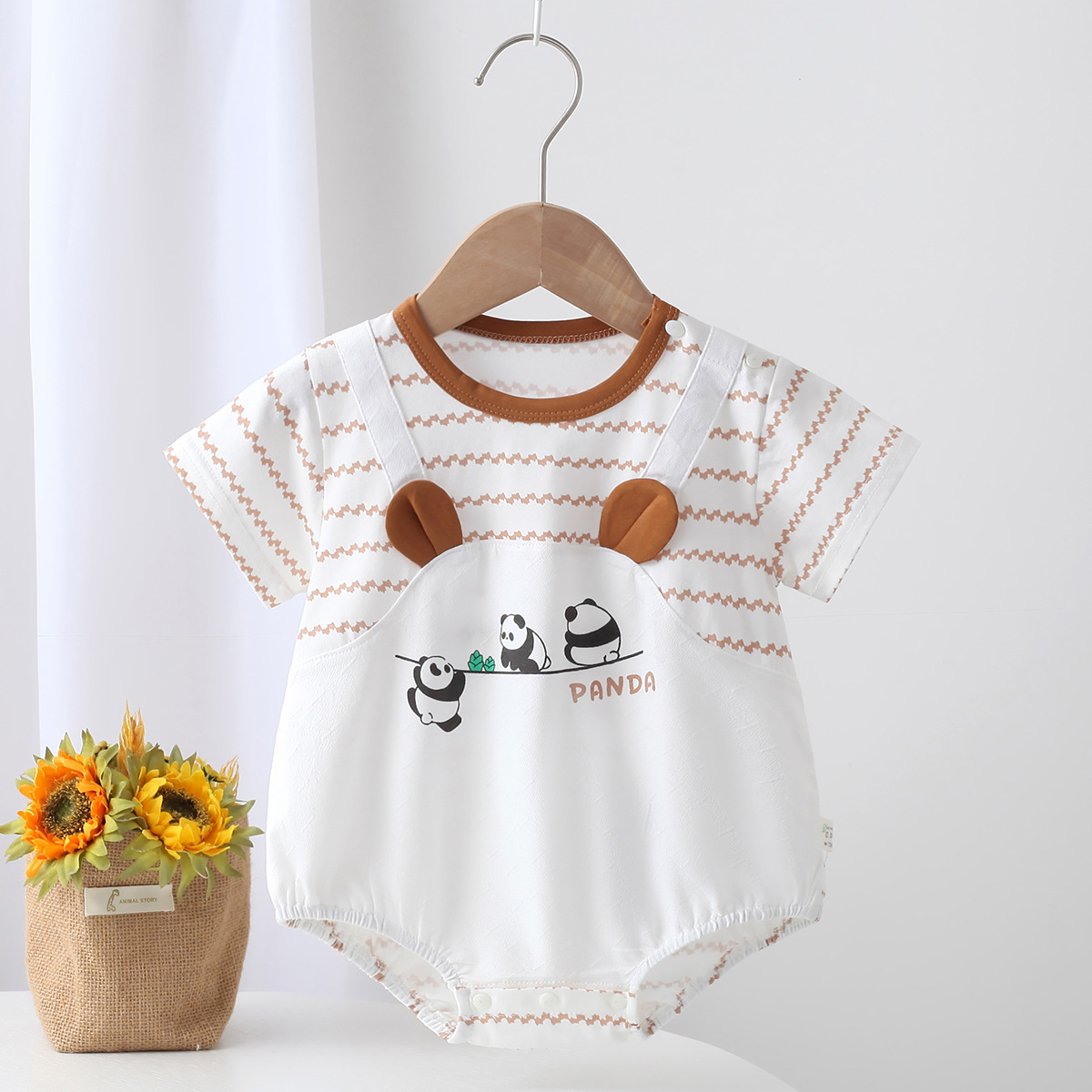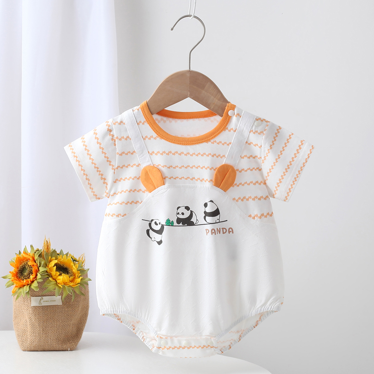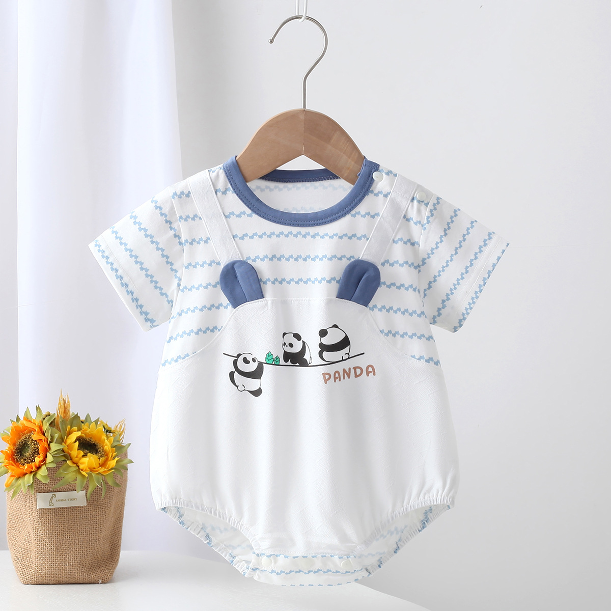 남자 아기의 몸 옷 여름 얇은 반팔 토끼 옷 외출 옷 귀여운 아기 옷 옷 삼각형 가방 뚱뚱한 옷스토어 가기