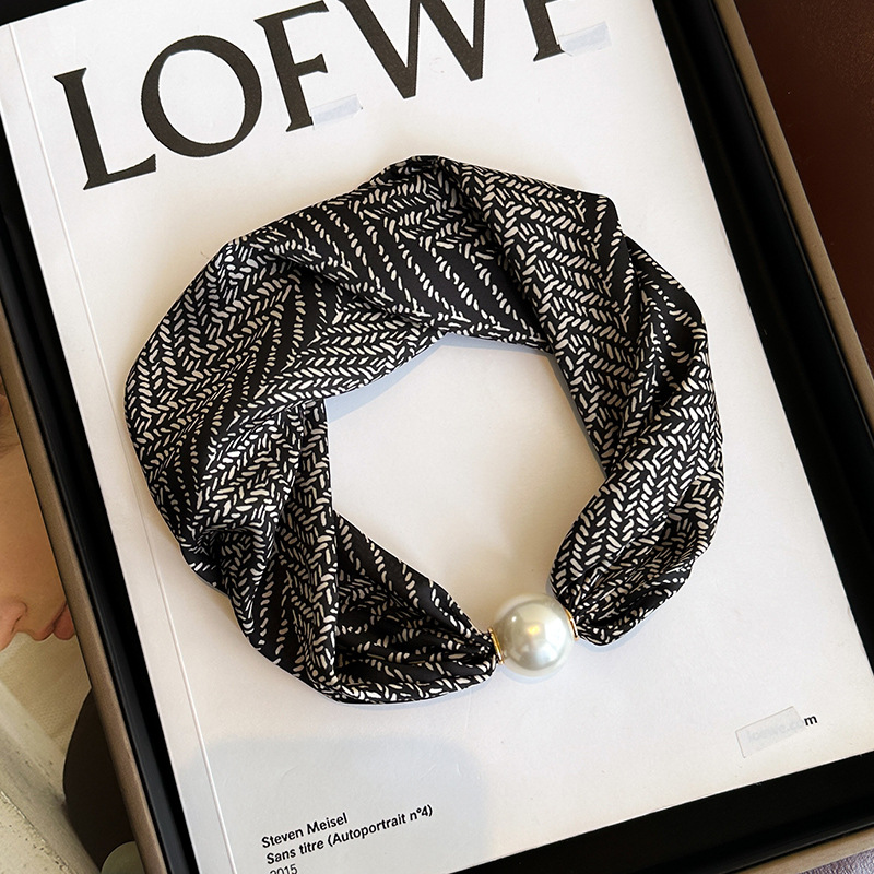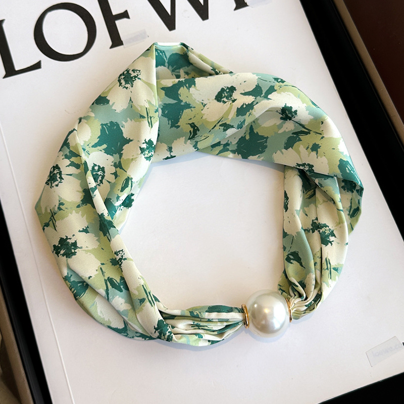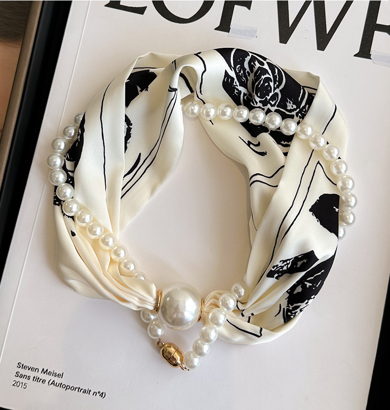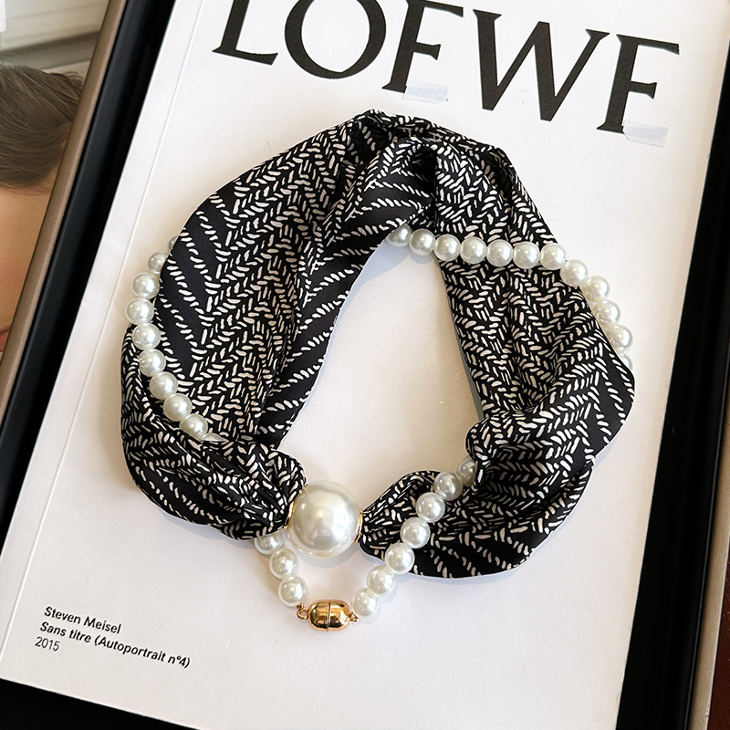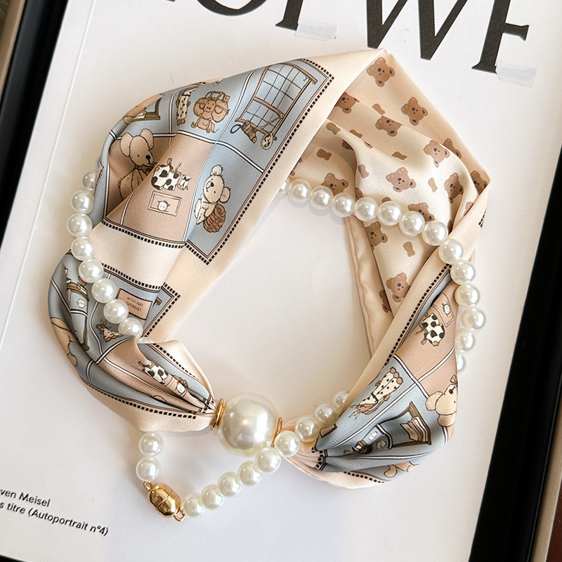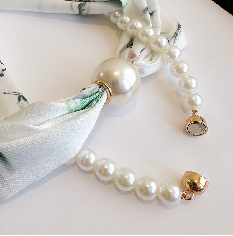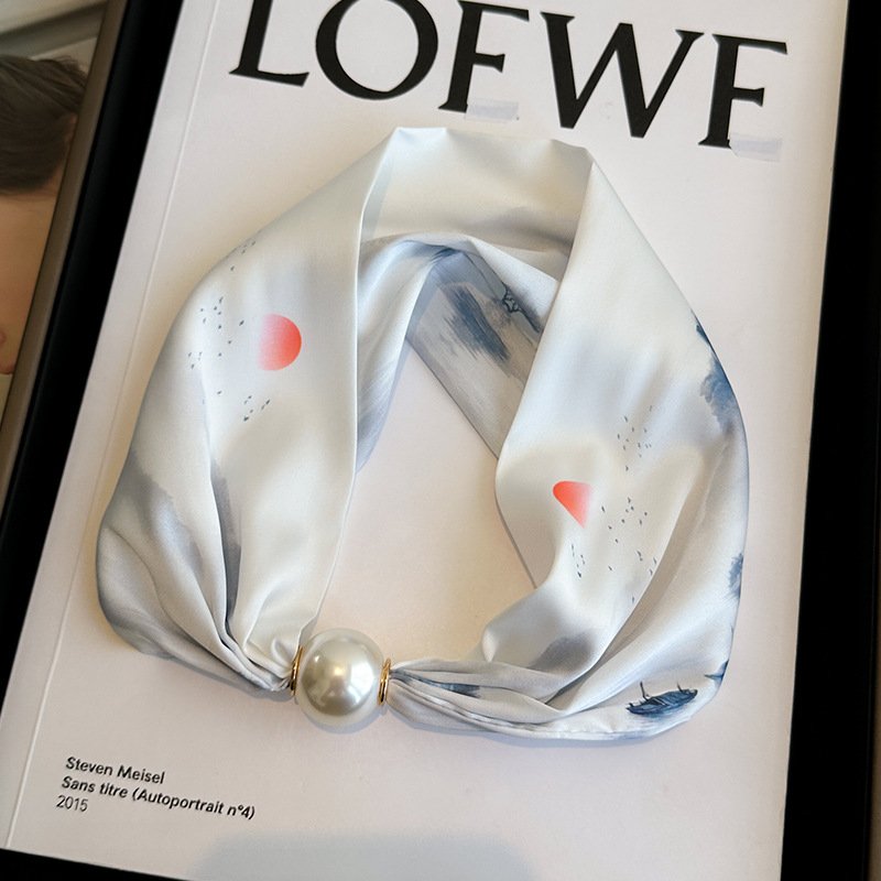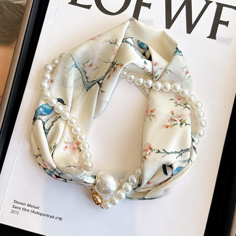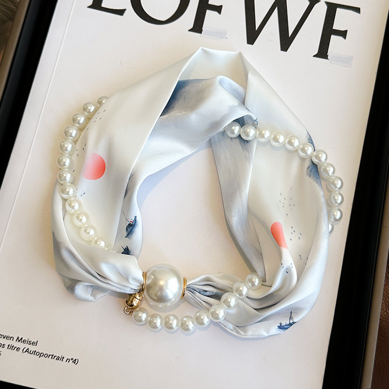 마그네틱 버클 진주 목걸이 얇은 좁은 긴 실크 스카프 여성의 봄과 가을 여름 목 목 일치하는 셔츠 얇은 스카프