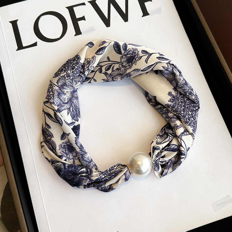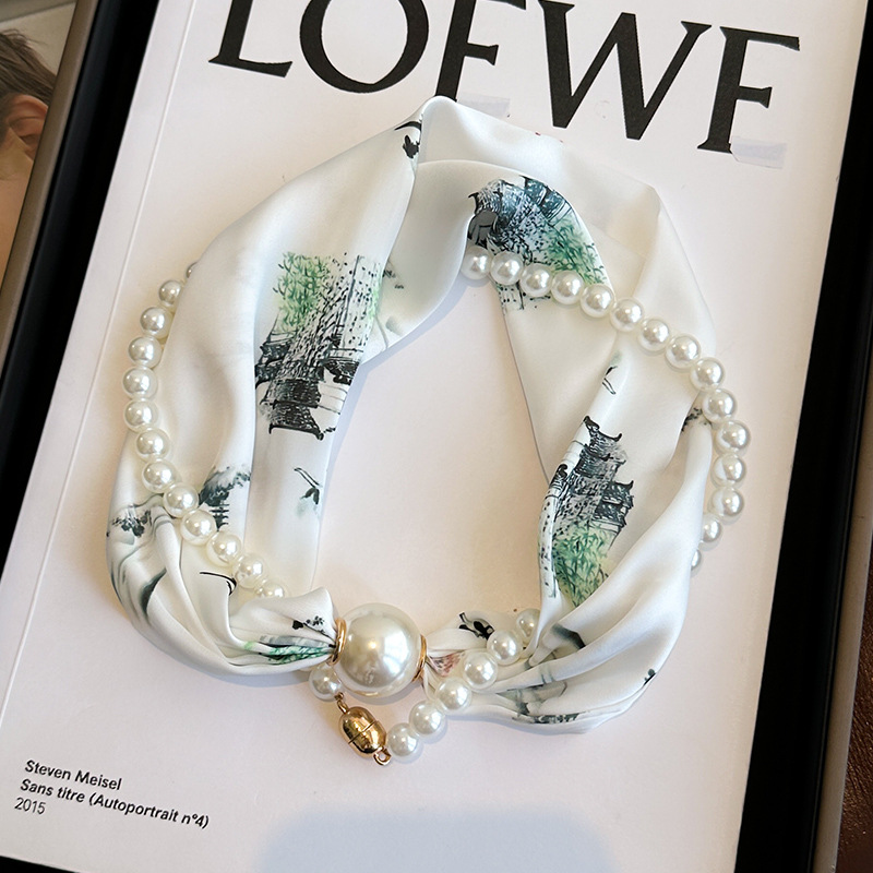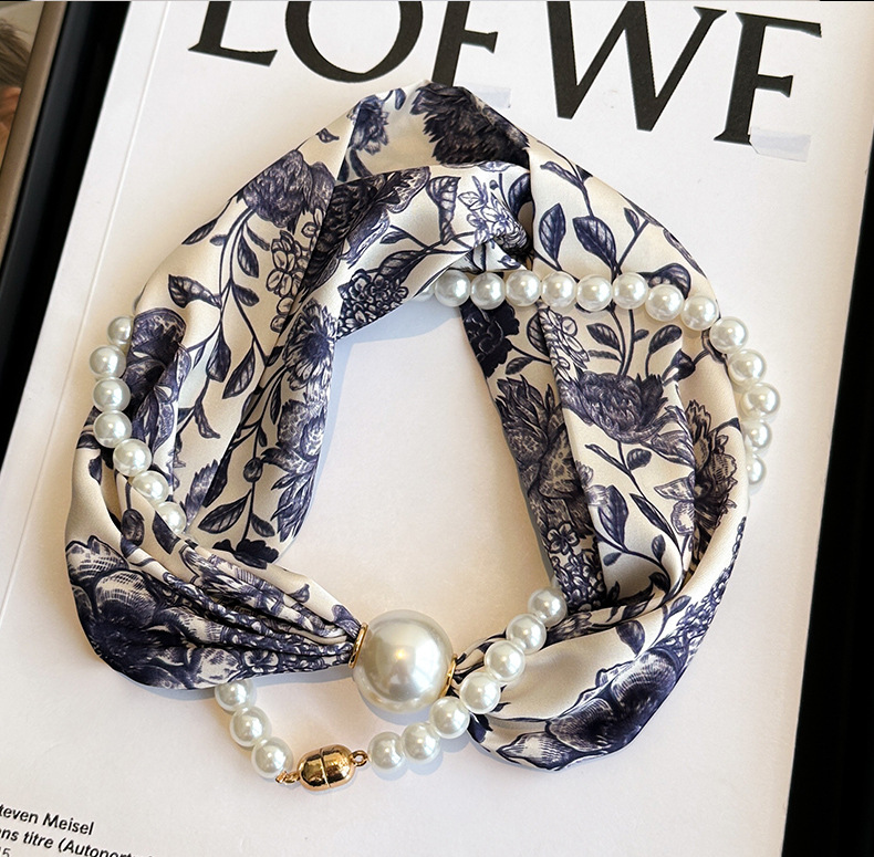 마그네틱 버클 진주 목걸이 얇은 좁은 긴 실크 스카프 여성의 봄과 가을 여름 목 목 일치하는 셔츠 얇은 스카프스토어 가기