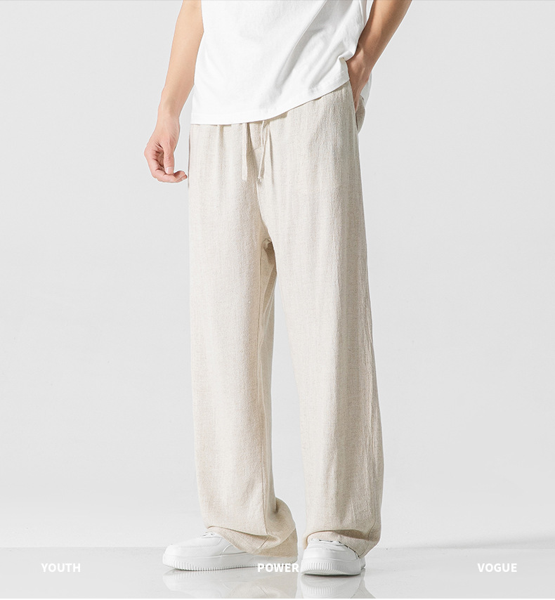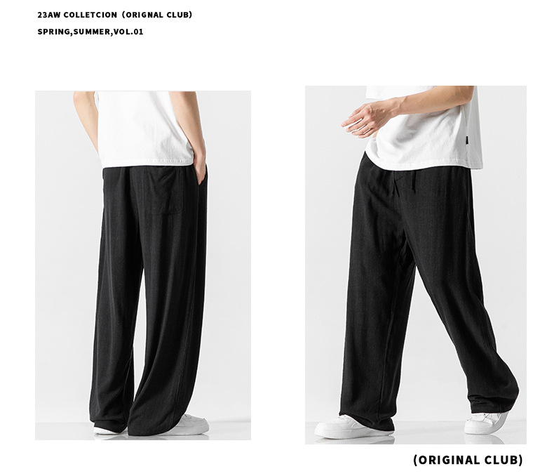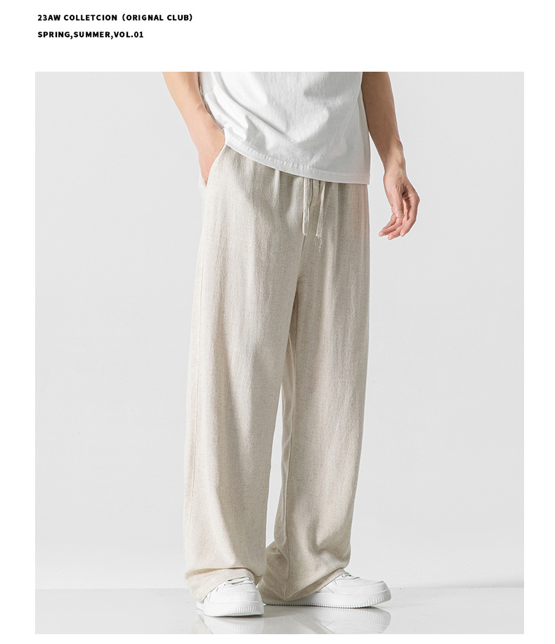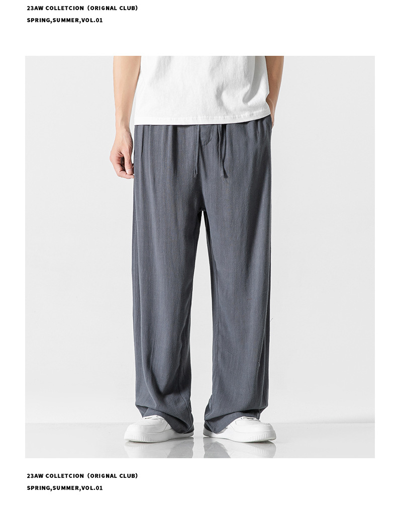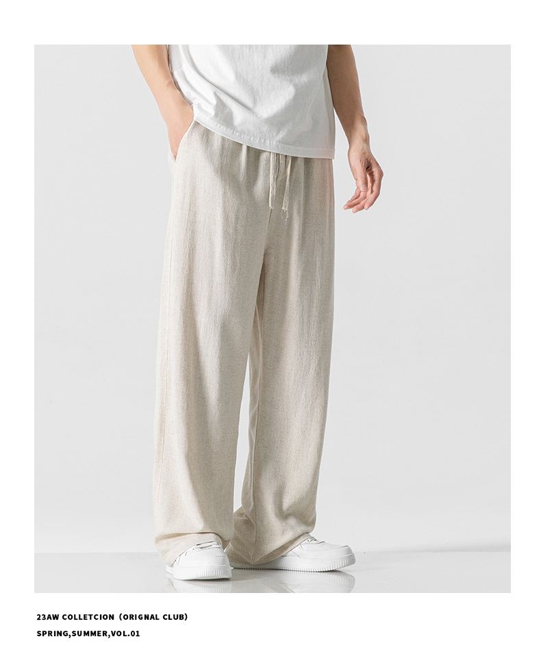 린넨 바지 남자 여름 느슨한 스트레이트 남자 캐주얼 바지 봄과 여름 새로운 남자 바지 여름 유두 면과 리넨 바지