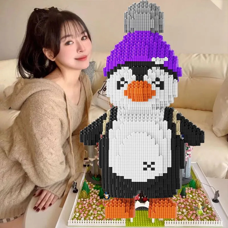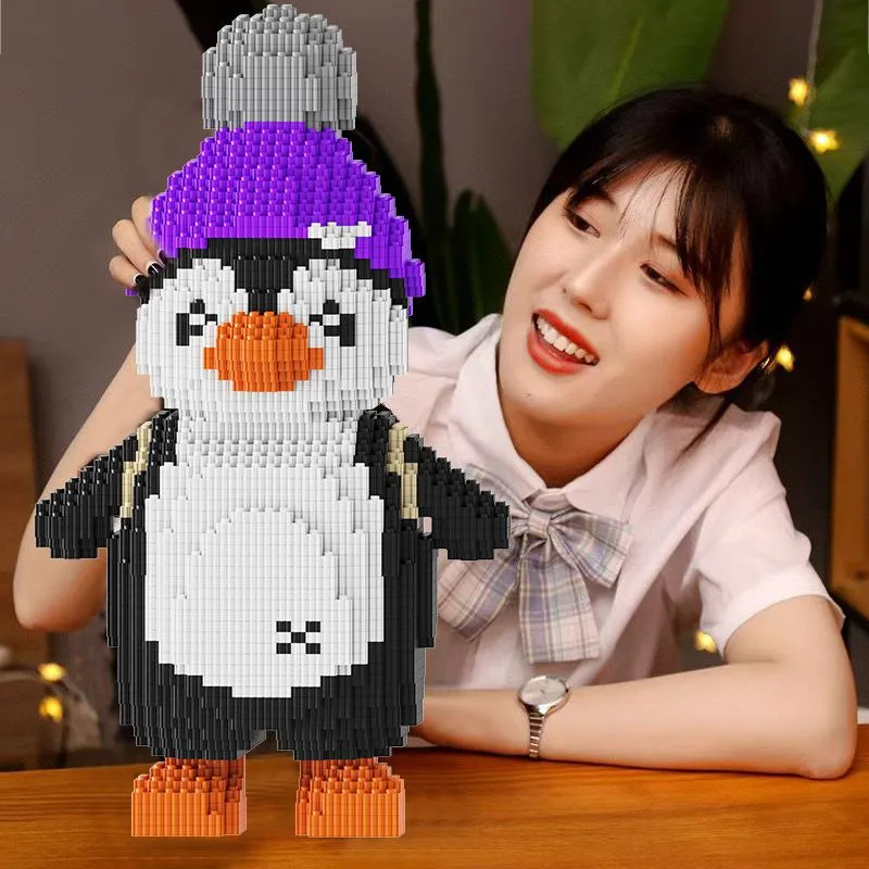 • 33CM 귀여운 꼬마 펭귄 + 빌딩 블록 해머
