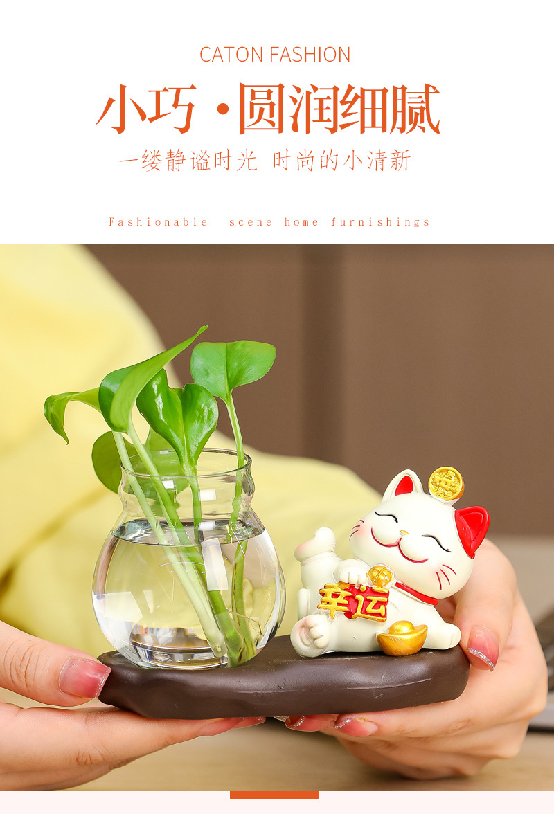 행운의 고양이 수경 장식품 만화 귀여운 축제 책상 거실 연구 데스크탑 장식 홈 작은 장식품스토어 가기