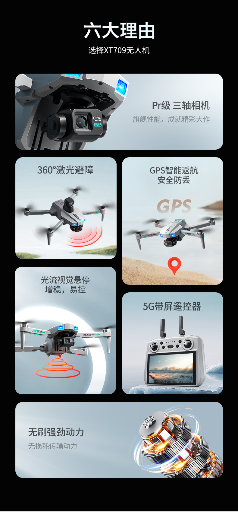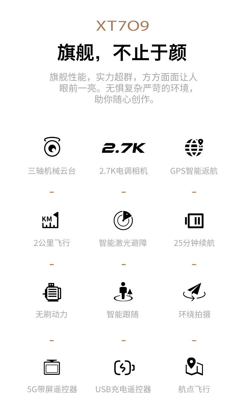 XT709 화면 무료 제어 UAV 3 축 팬 틸트 HD 렌즈 원격 제어 항공기 GPS 위치 항공기 국경스토어 가기