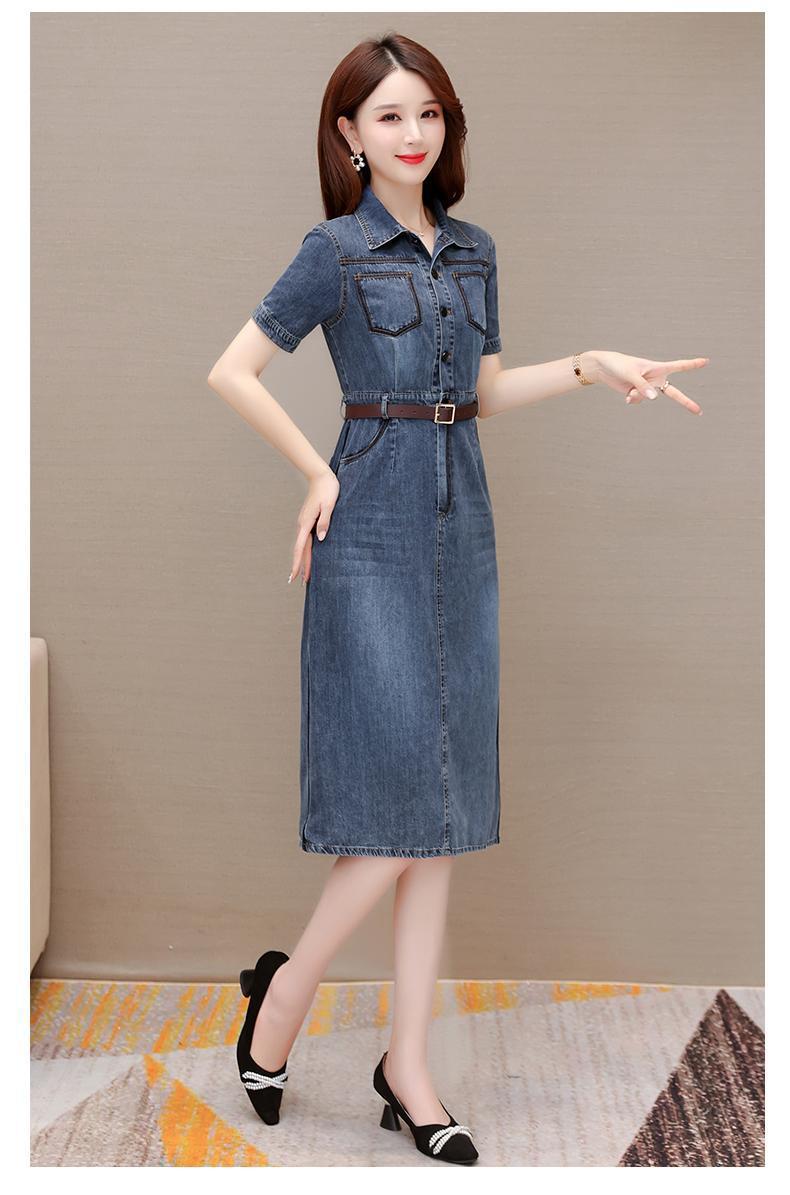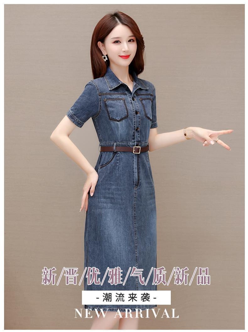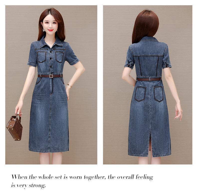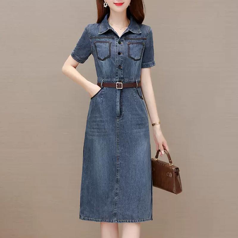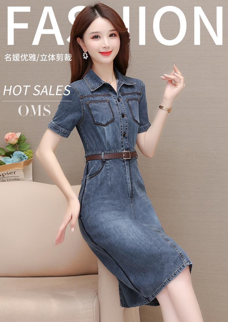 데님 스커트 2025 새로운 여름 여성 패션 서양 스타일 중간 길이의 허리 슬리밍 하이 엔드 얇은 원피스스토어 가기
