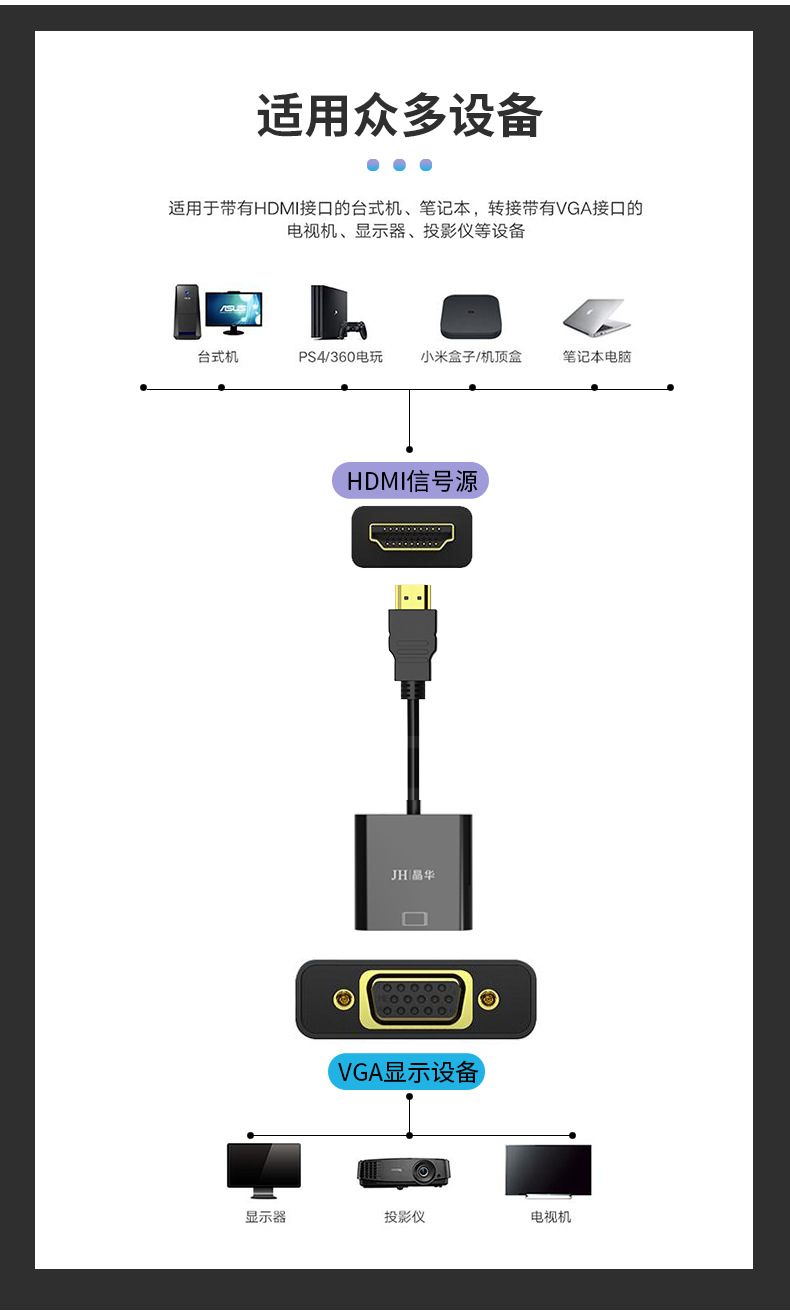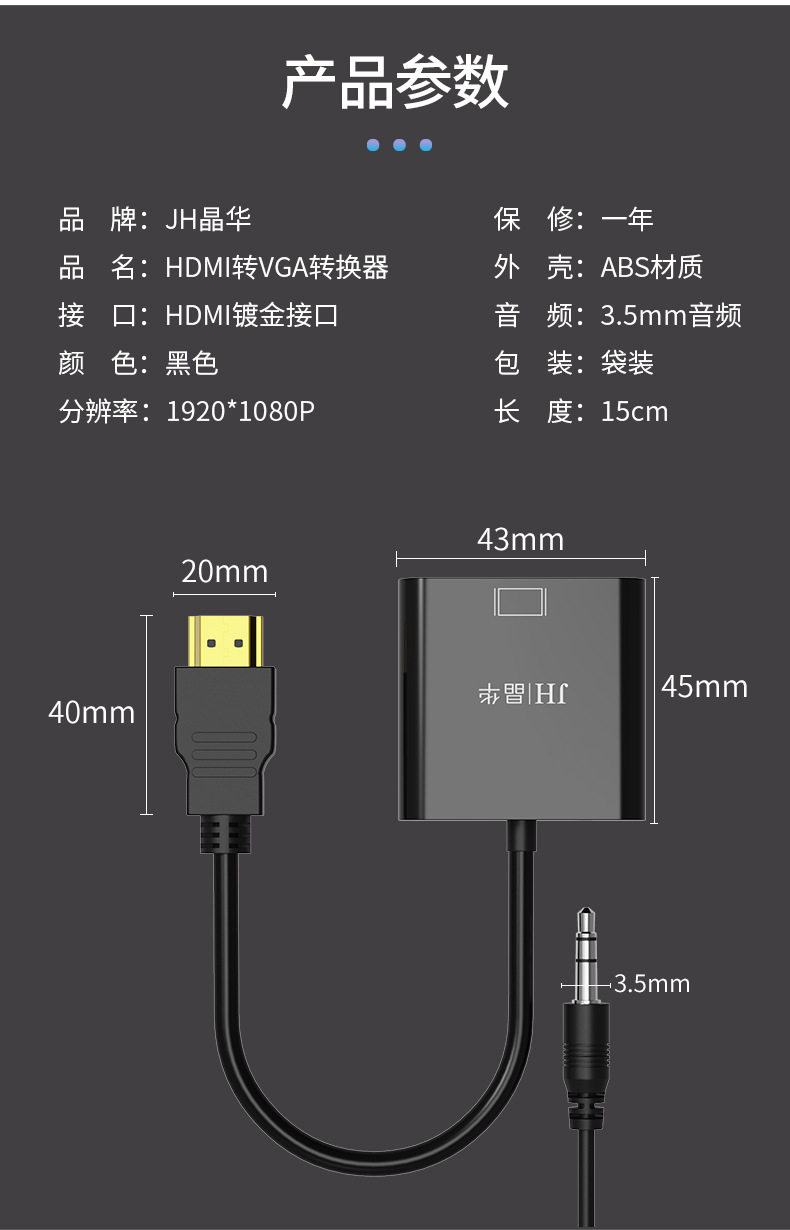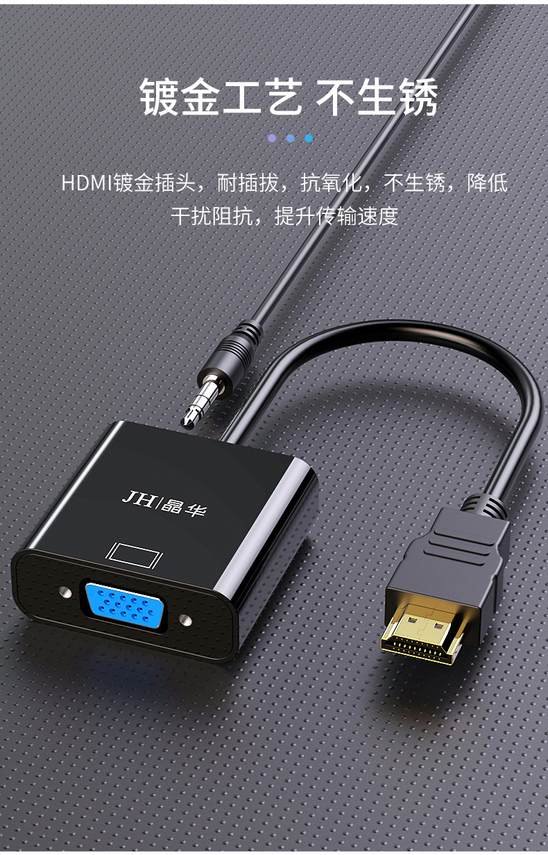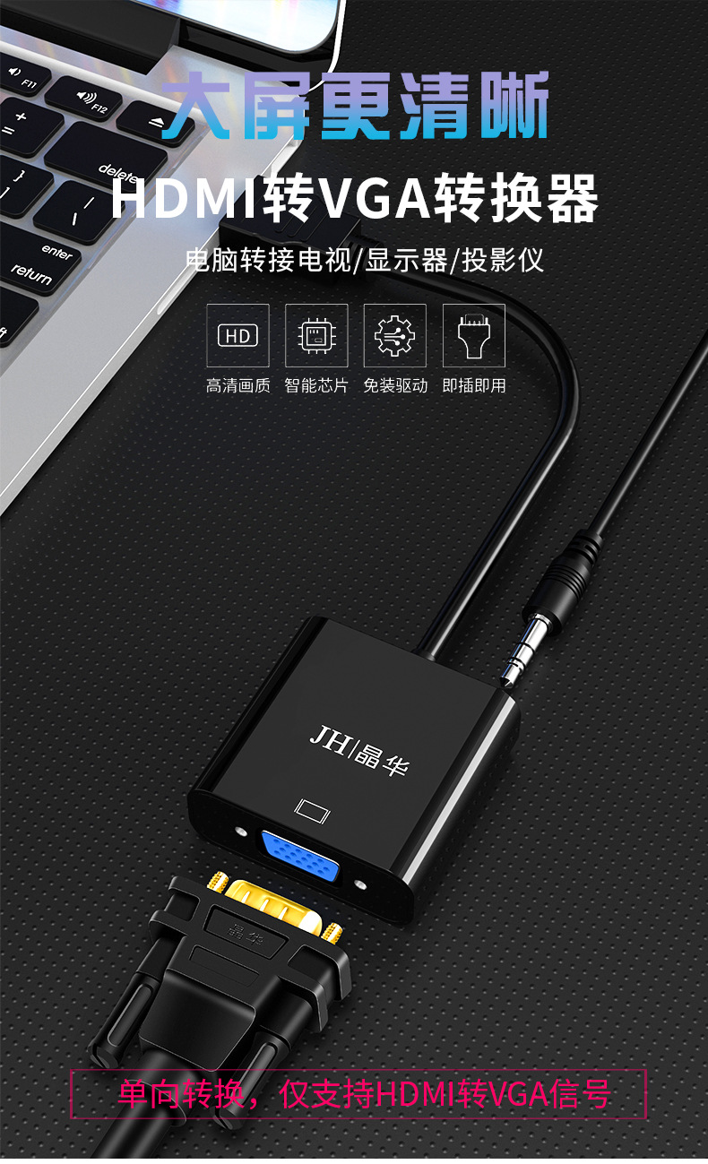 晶华hdmi转vga转换器带独立音频高清转接线投影仪显示器转接头