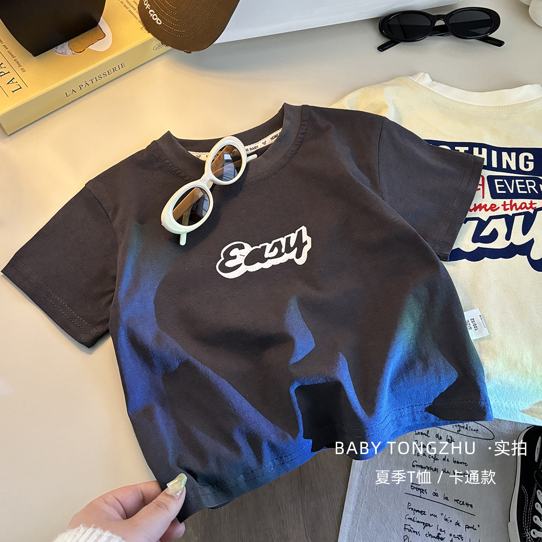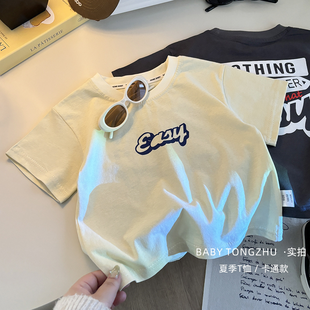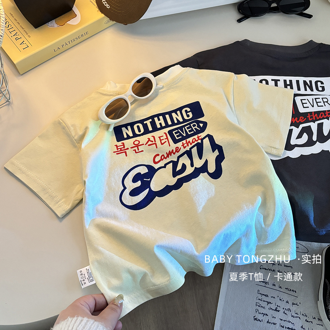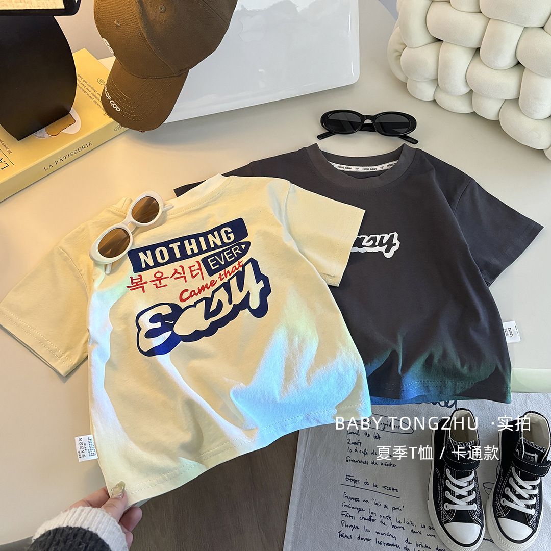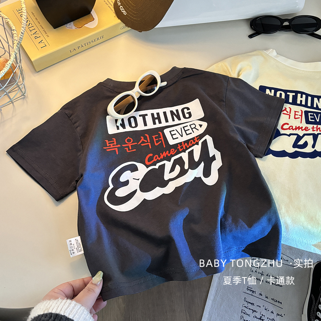 [100% 면] 어린이 여름면 반소매 티셔츠 한국식 올매치 코튼 티셔츠 남녀 캐주얼스토어 가기