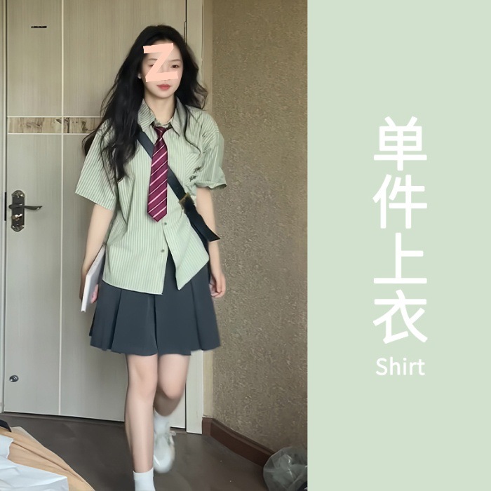 한국식 아카데미 스타일 그린 스트라이프 반팔 셔츠 여자 2025 년 여름 하이 엔드 센스 루즈 올매치 스위트 JK 셔츠