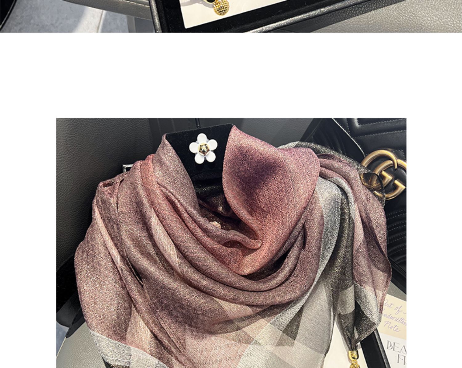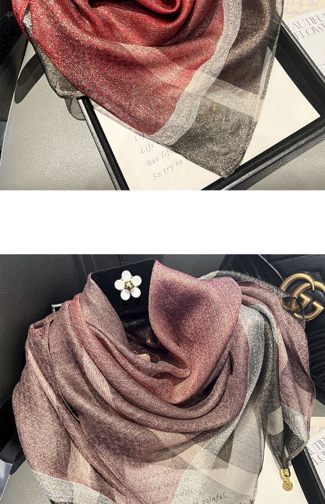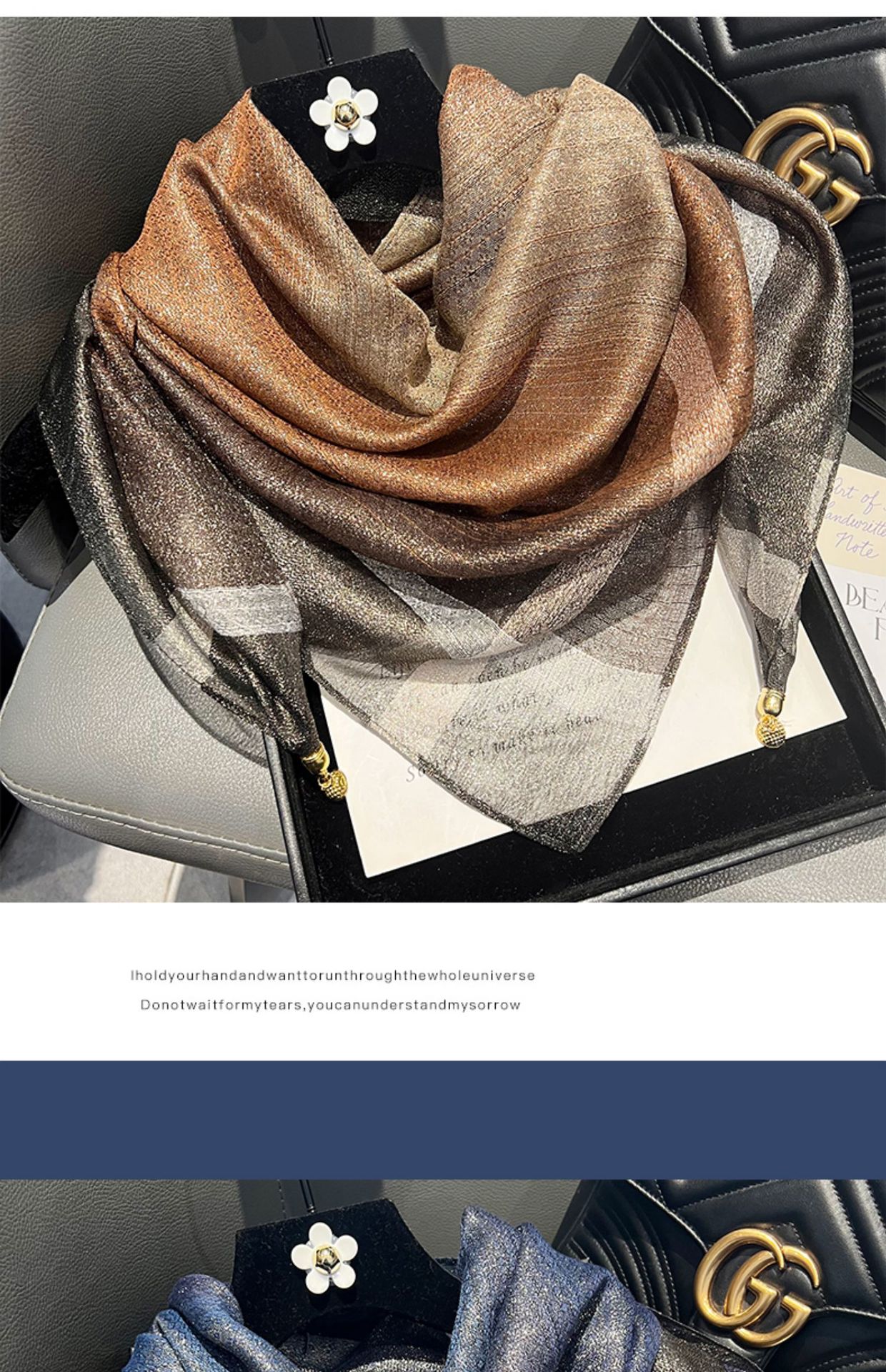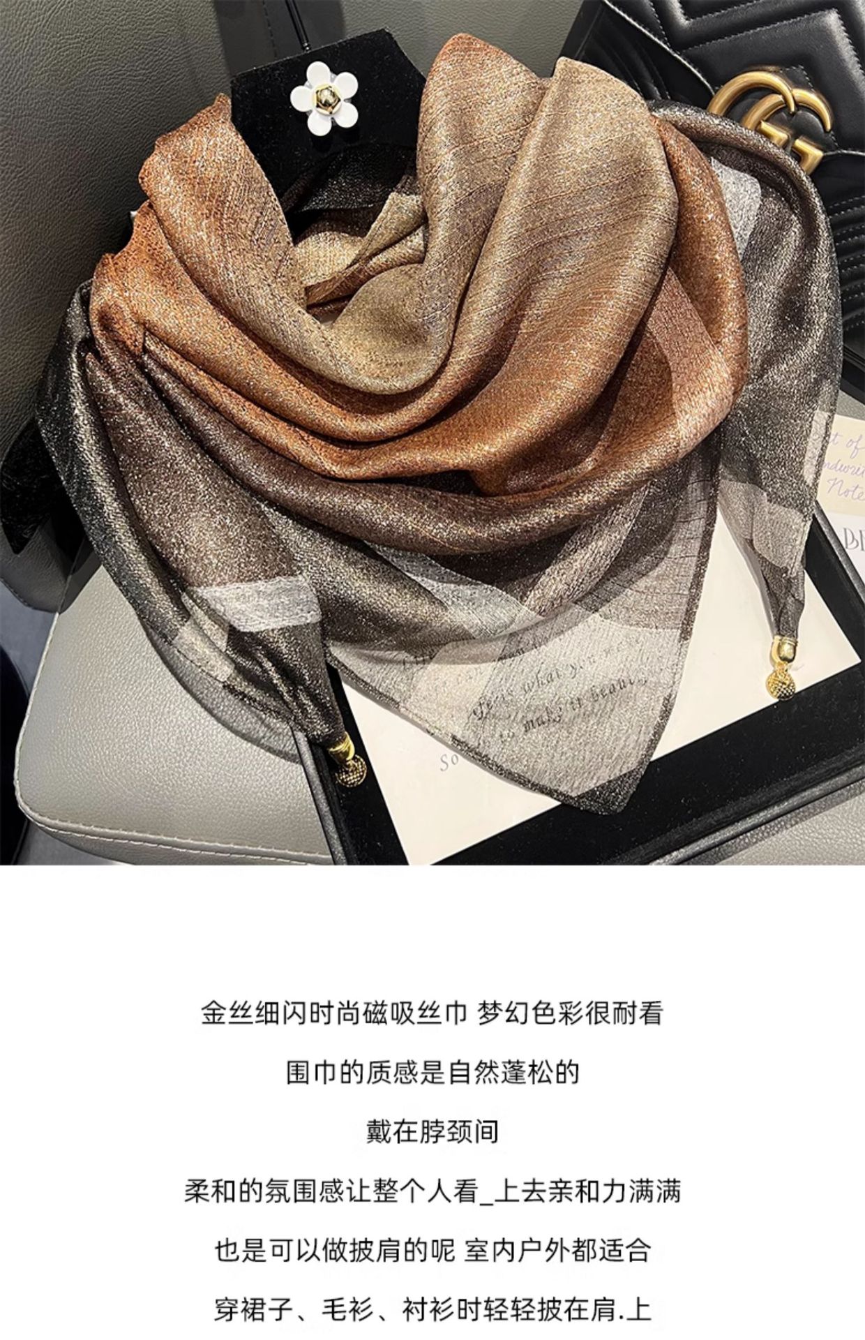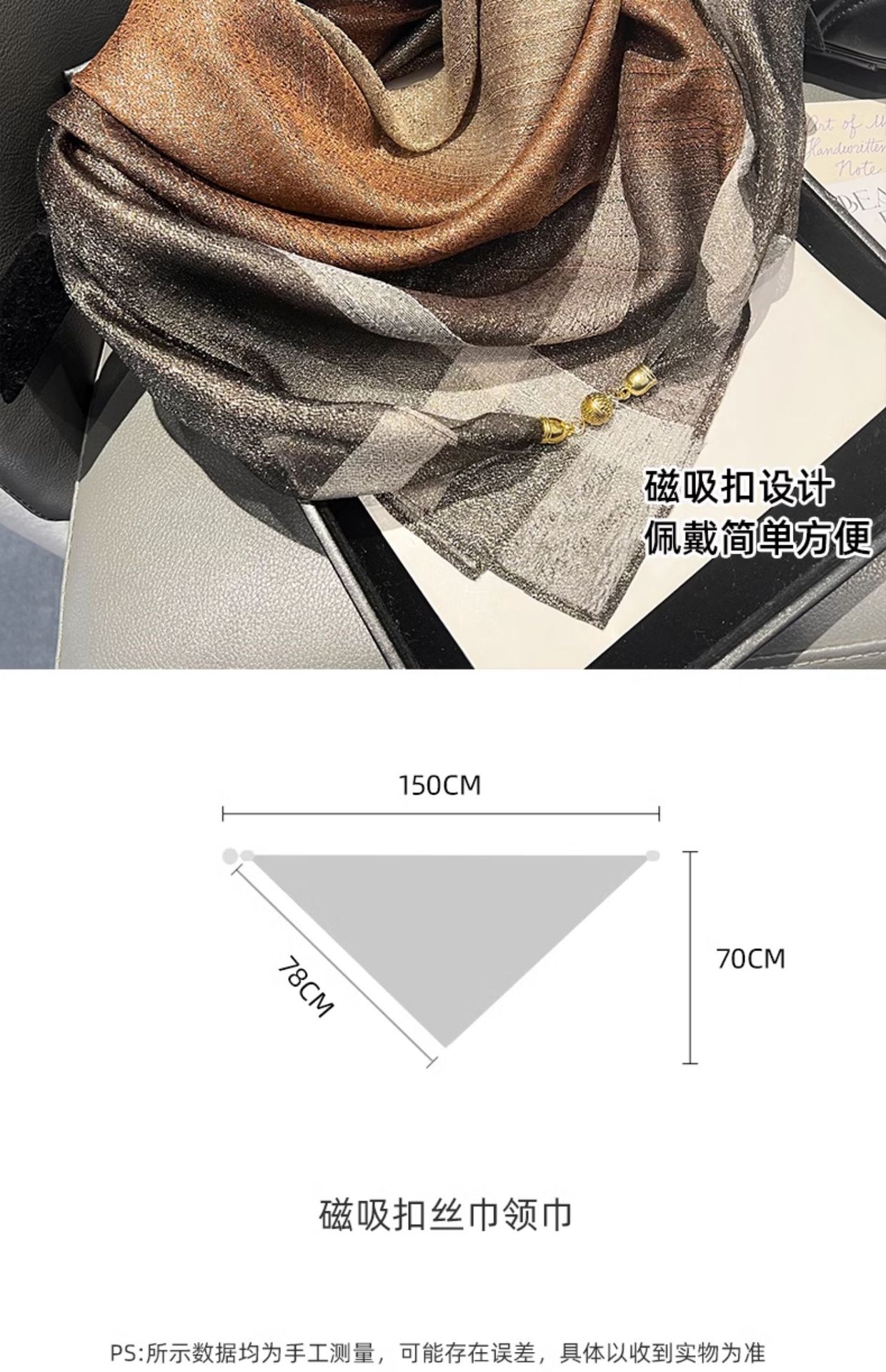 여성을위한 하이 엔드 그라디언트 마그네틱 버클 스카프 봄, 가을 2025 새로운 거즈 스카프 대형 사각형 스카프 목 보호 삼각형 작은 스카프스토어 가기