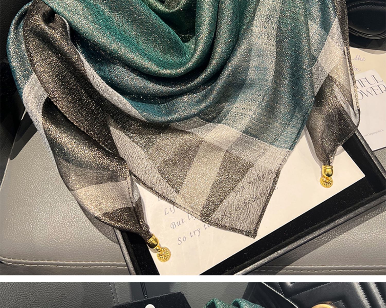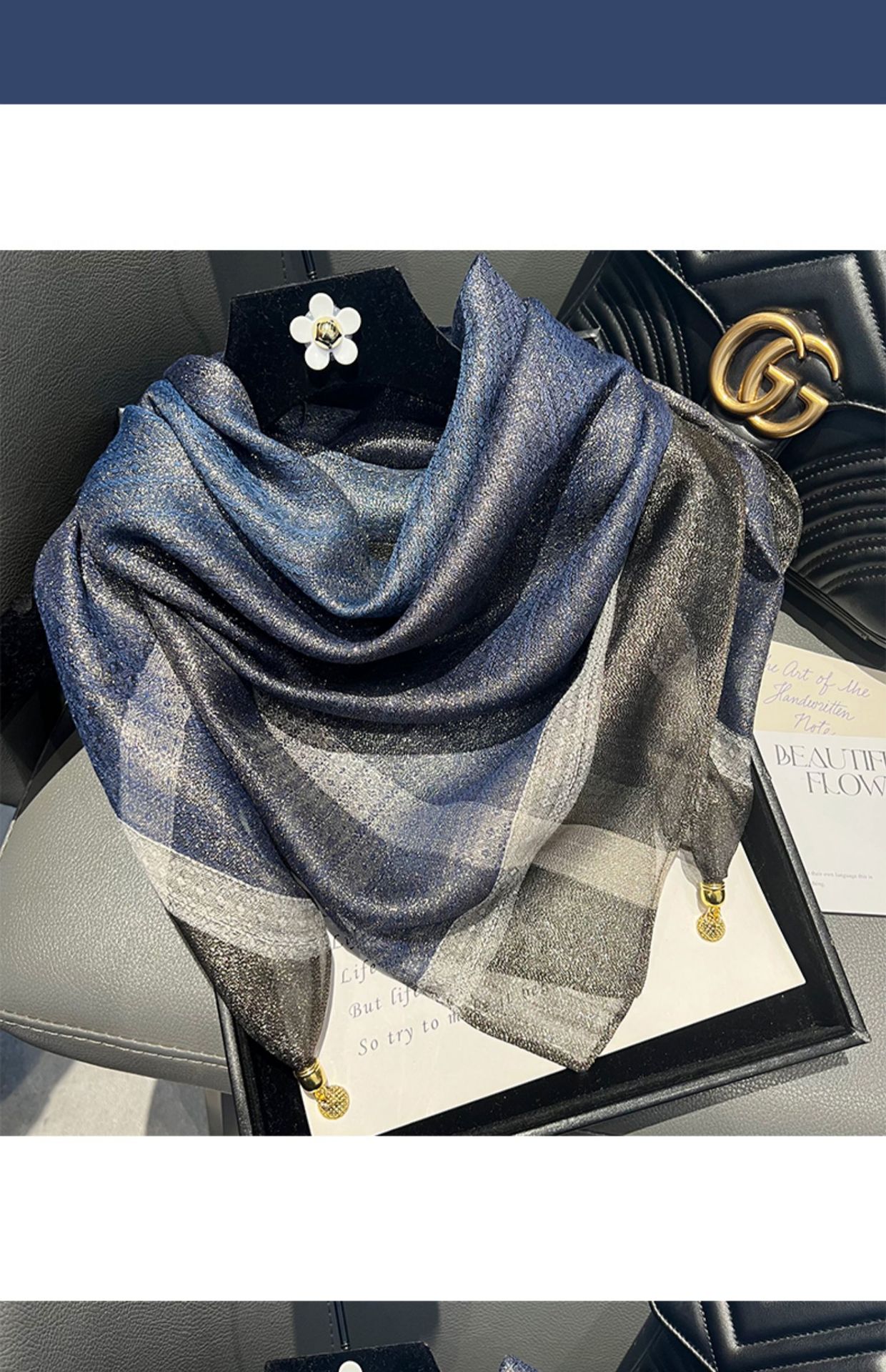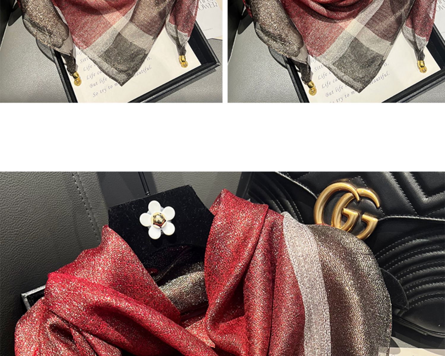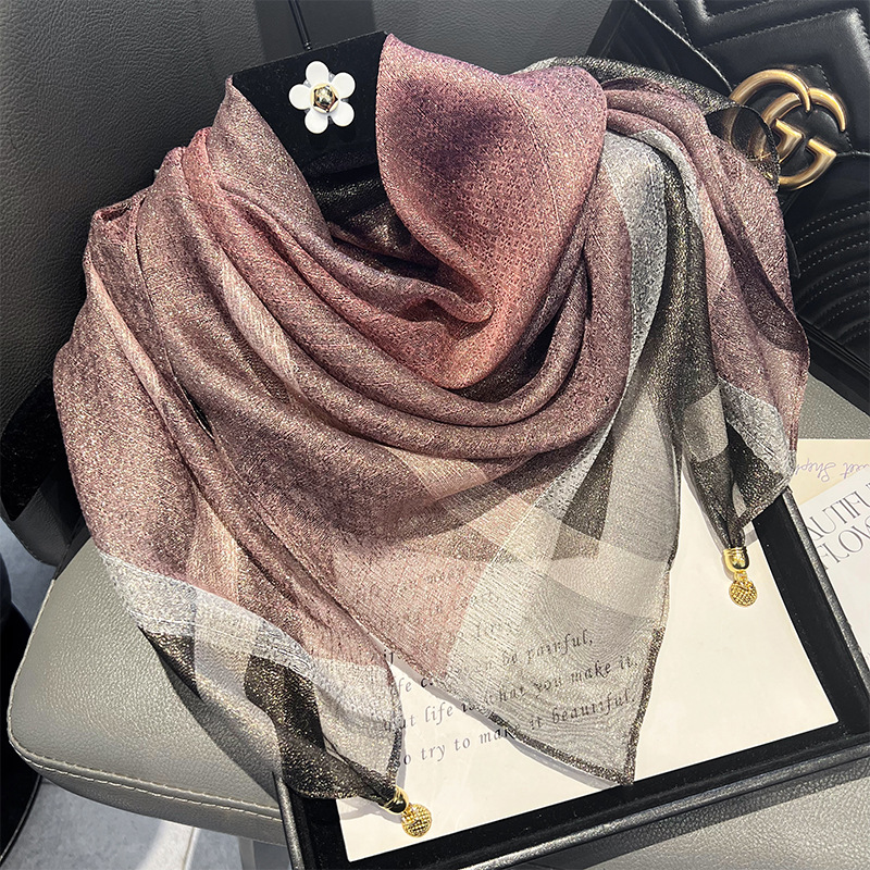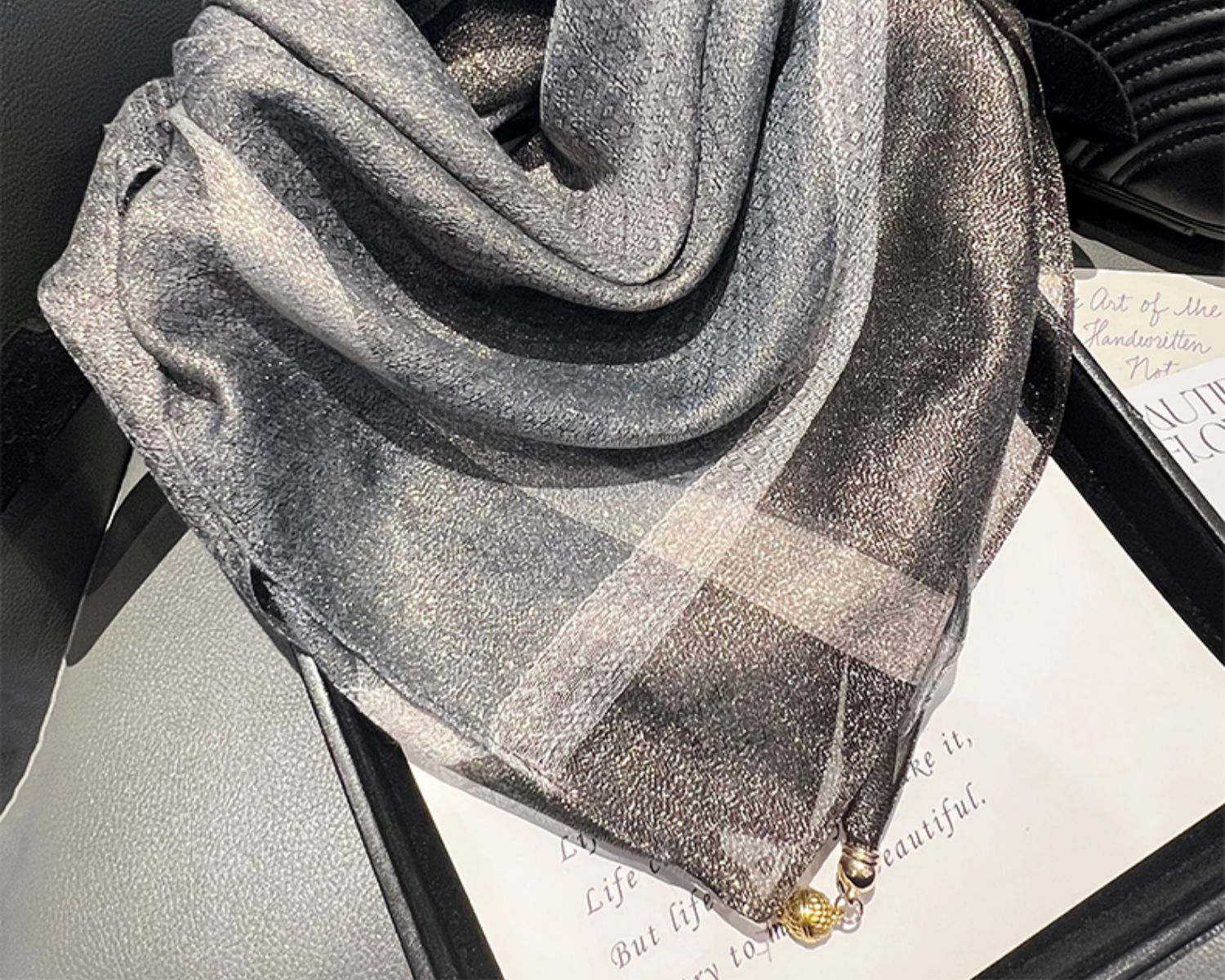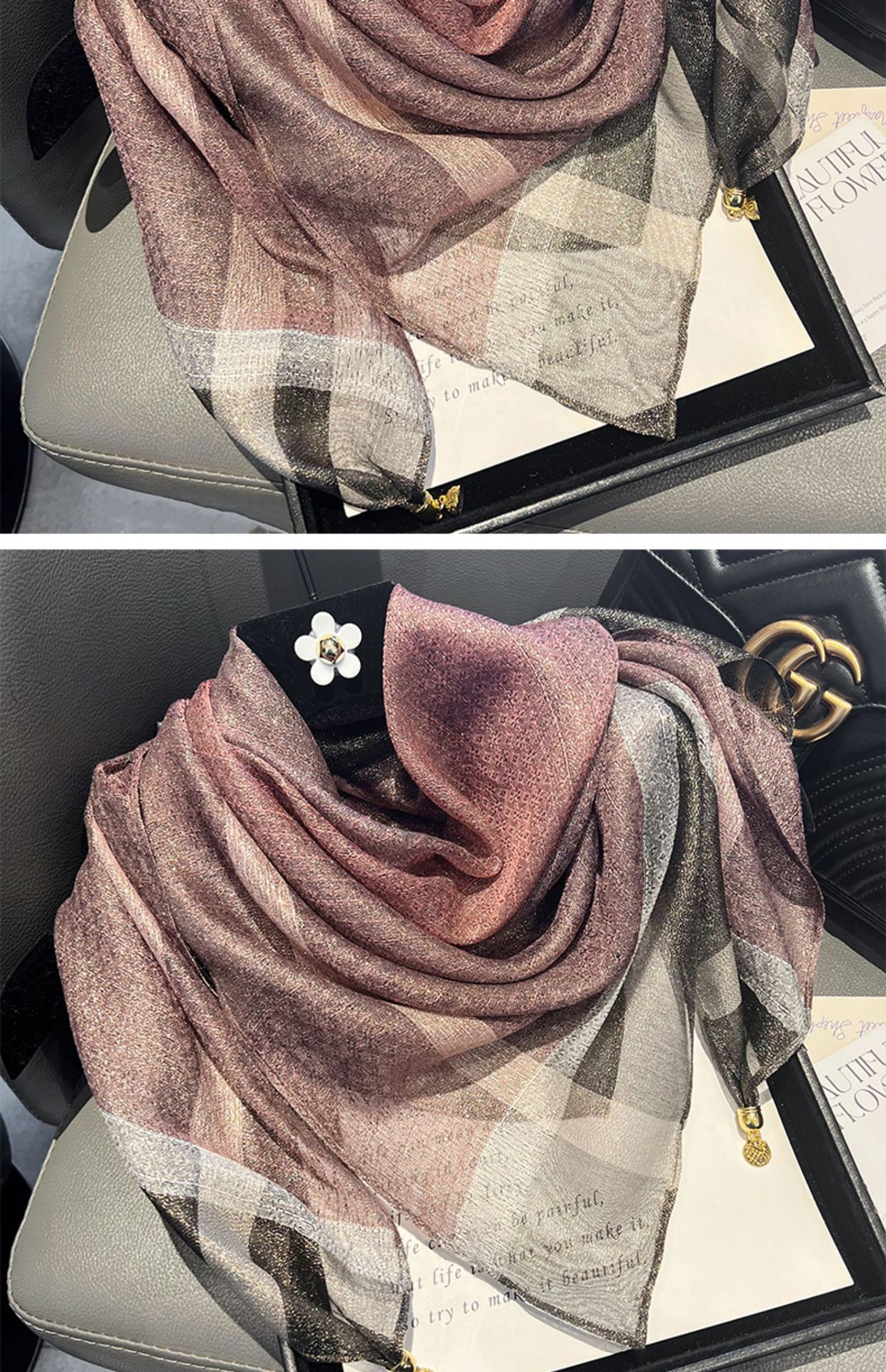 여성을위한 하이 엔드 그라디언트 마그네틱 버클 스카프 봄, 가을 2025 새로운 거즈 스카프 대형 사각형 스카프 목 보호 삼각형 작은 스카프스토어 가기
