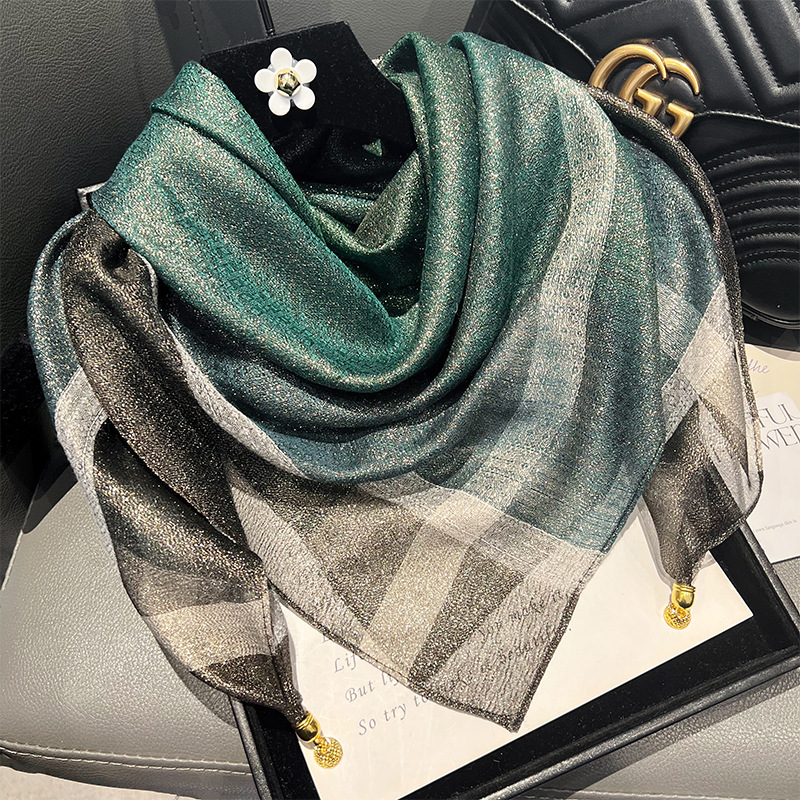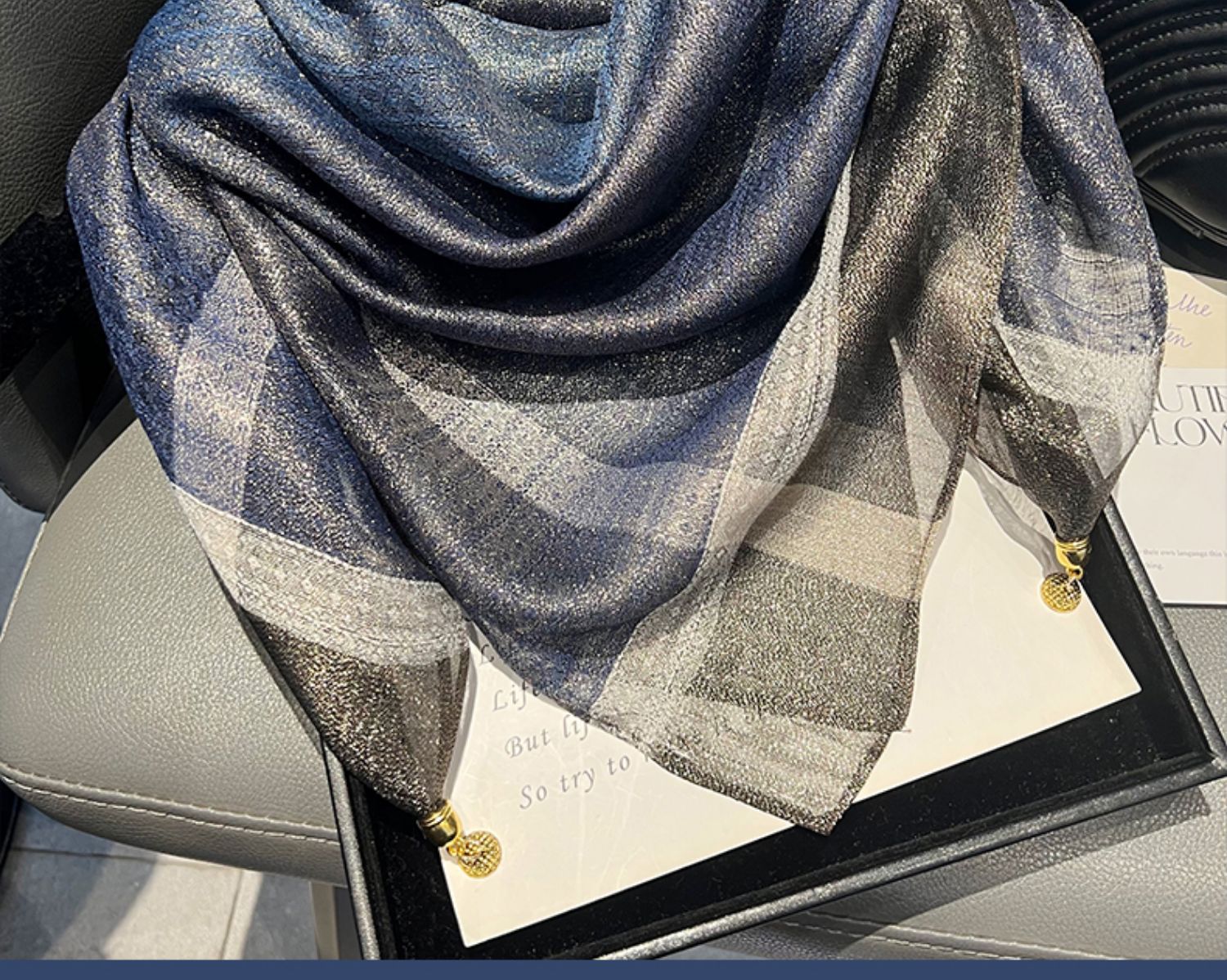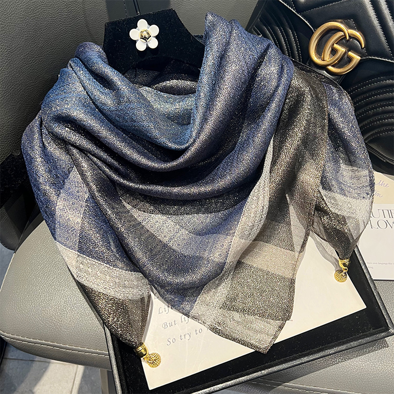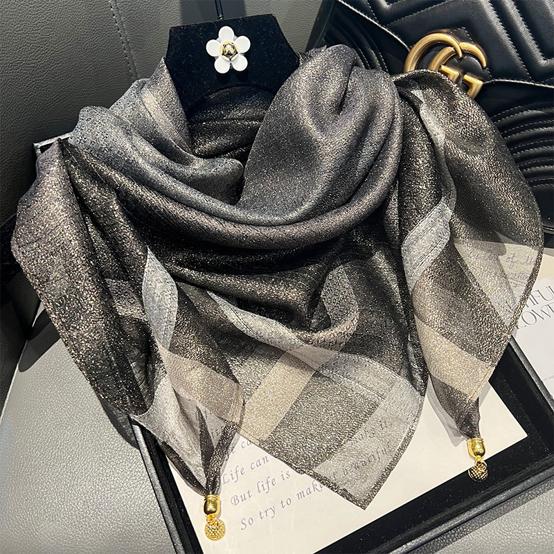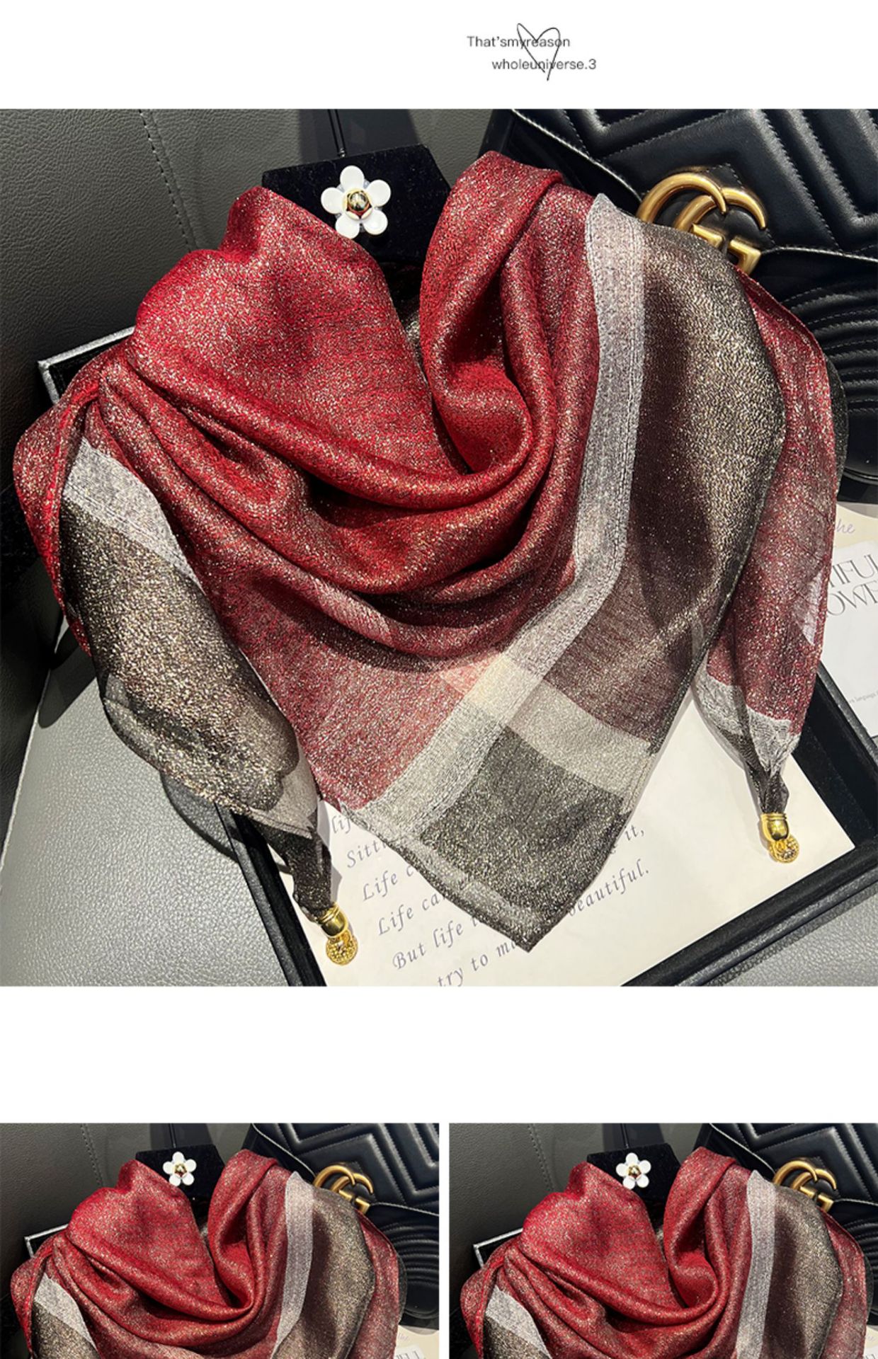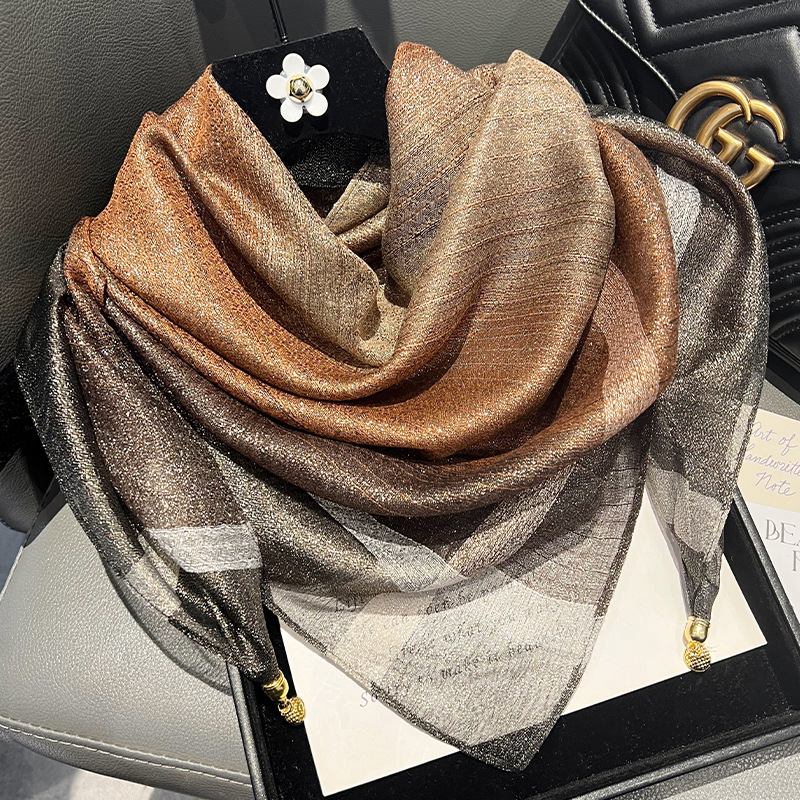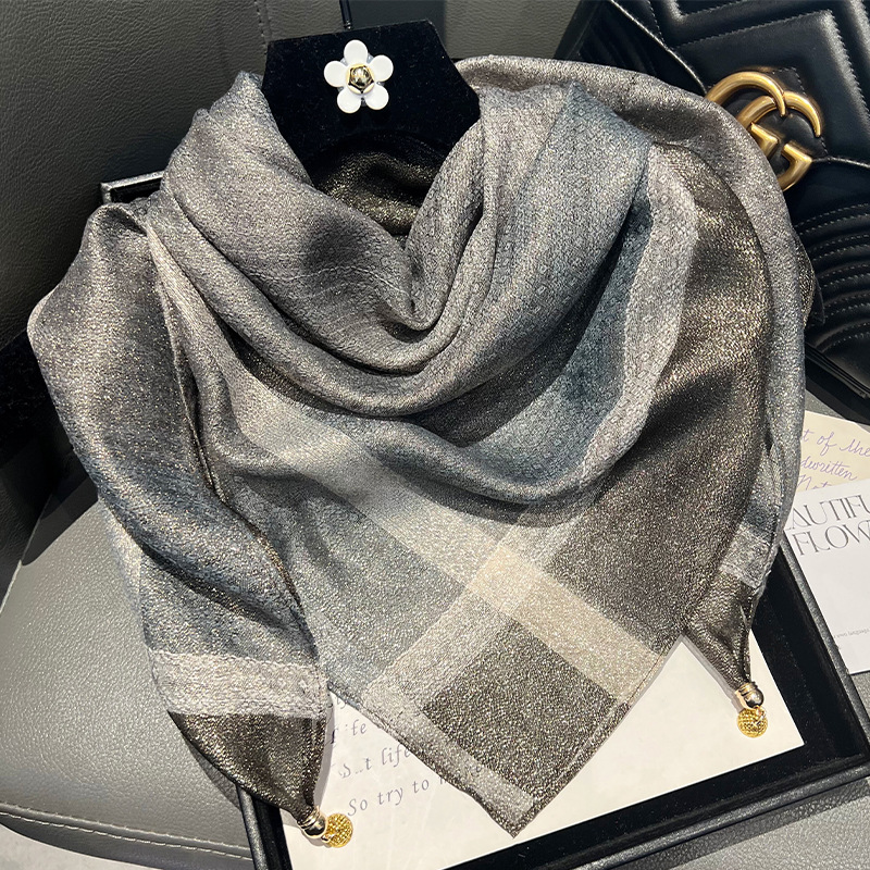 여성을위한 하이 엔드 그라디언트 마그네틱 버클 스카프 봄, 가을 2025 새로운 거즈 스카프 대형 사각형 스카프 목 보호 삼각형 작은 스카프스토어 가기