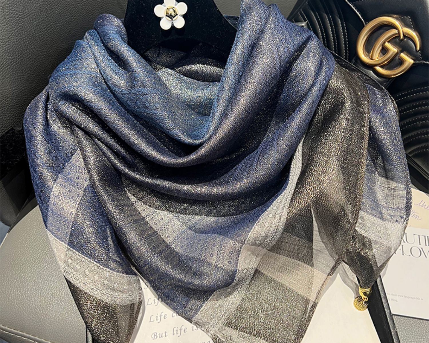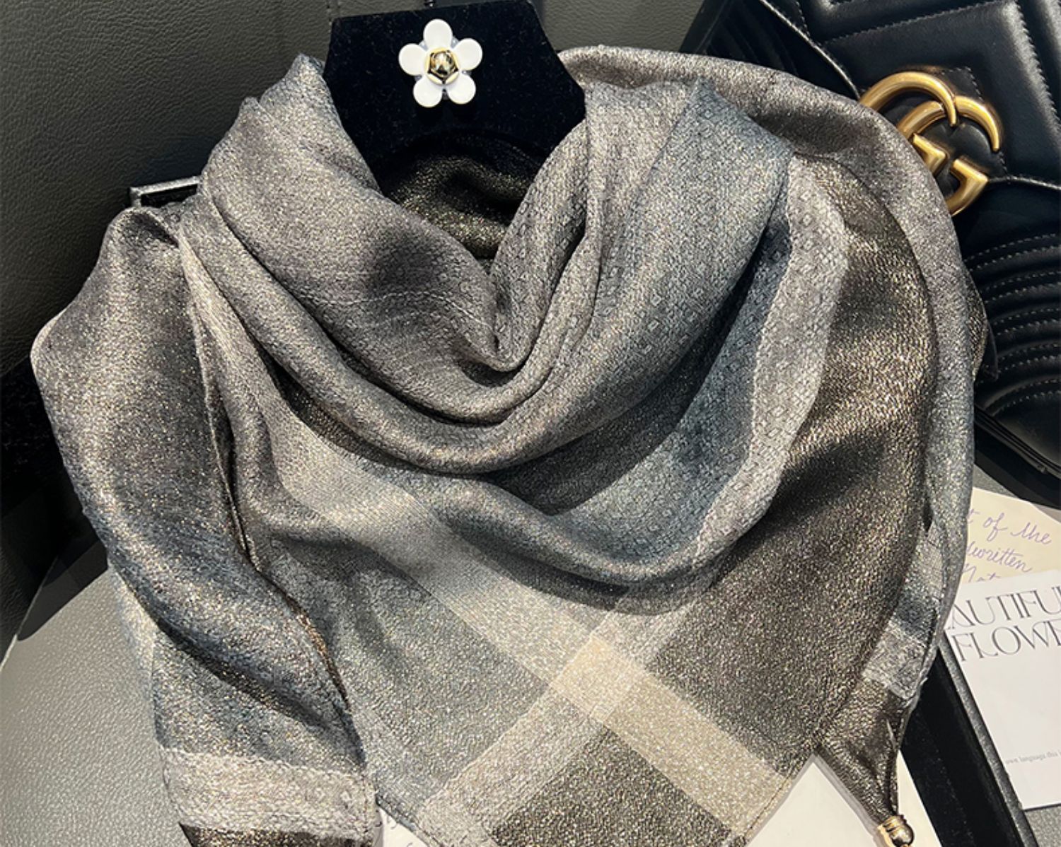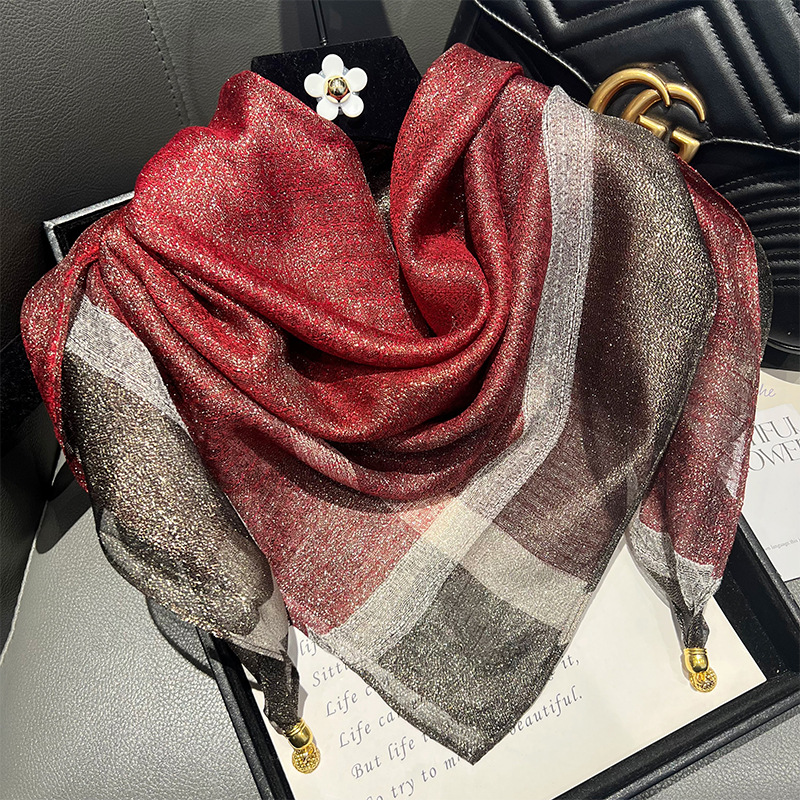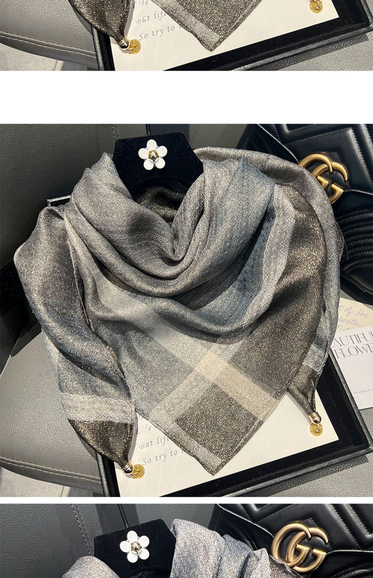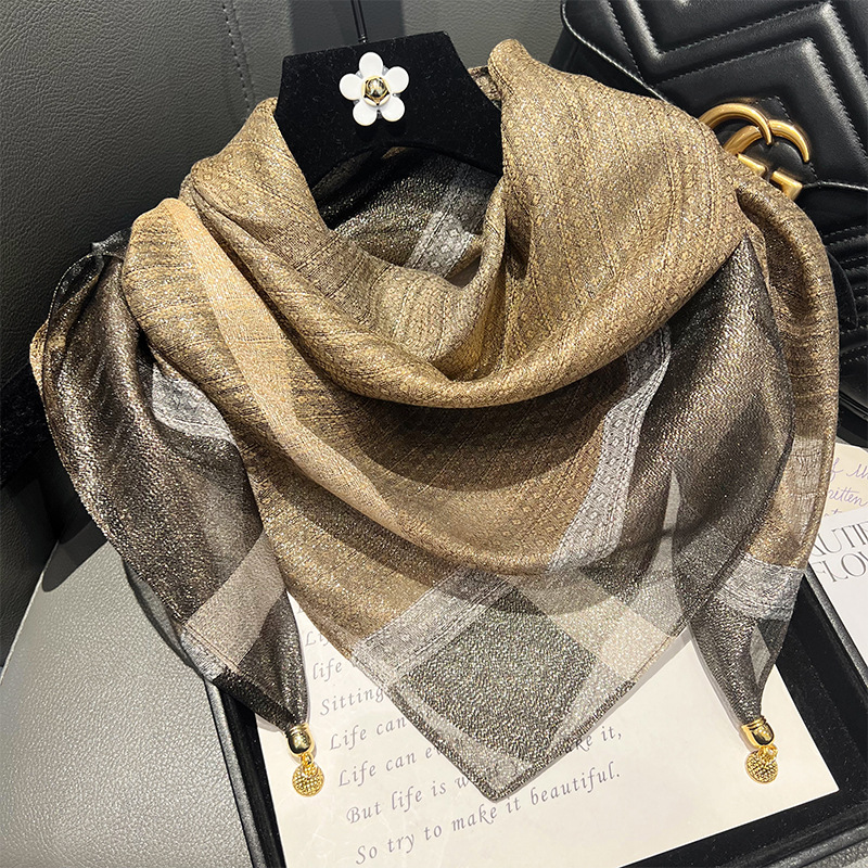 여성을위한 하이 엔드 그라디언트 마그네틱 버클 스카프 봄, 가을 2025 새로운 거즈 스카프 대형 사각형 스카프 목 보호 삼각형 작은 스카프