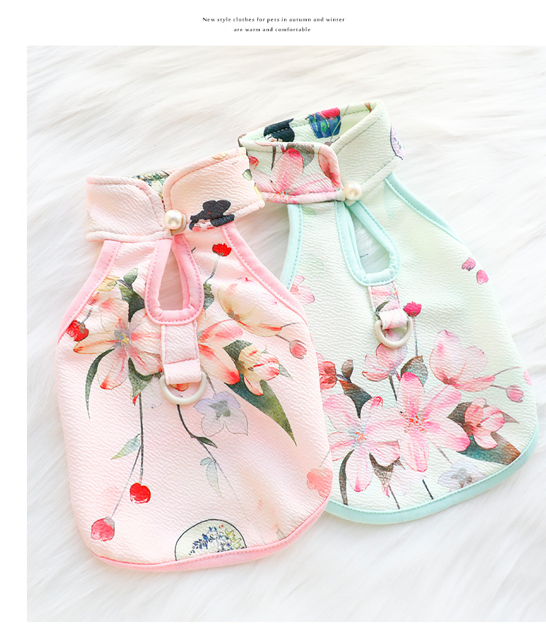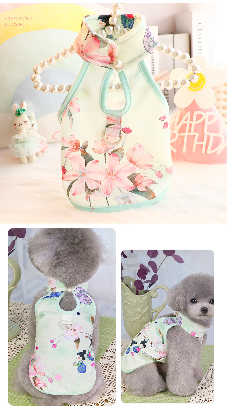 개 옷 봄 여름 옷 얇은 고양이 공주 Guofeng 국가 패션 청삼 조끼 작은 개 테디 애완 동물 6757
