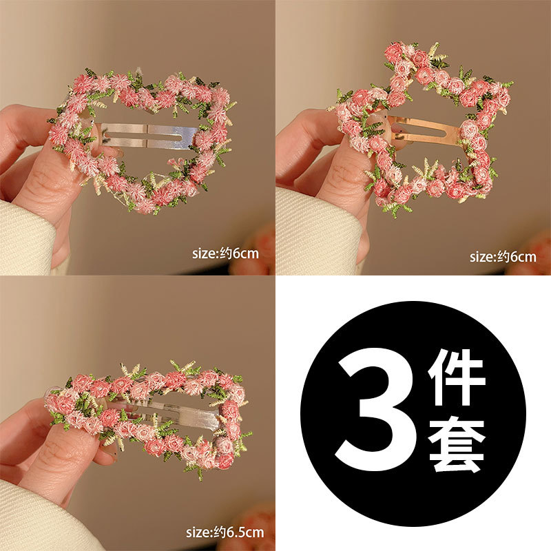 고급 핑크 꽃 헤어 클립 여성의 2025 새로운 달콤한 사랑 BB 클립 이마 사이드 앞머리 카드 머리 장식스토어 가기